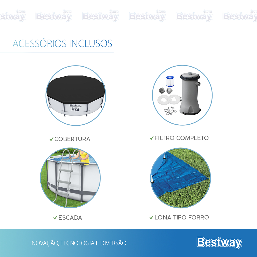 Piscina Estrutural 9150 Litros + Escada + Capa + Forro + Bomba Filtrante Bestway