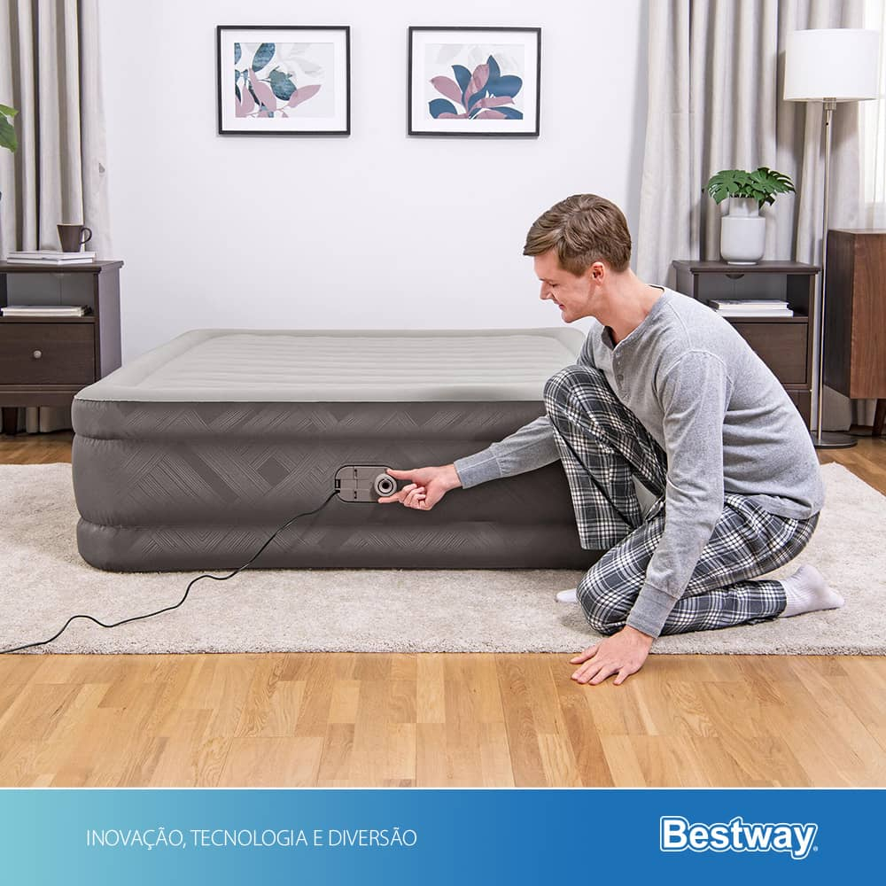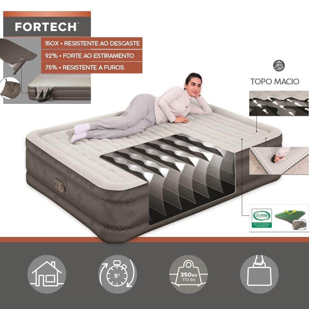 Cama Colchão Inflável Casal Até 350kg Fortech Queen Com Bomba Embutida + Bolsa Bestway