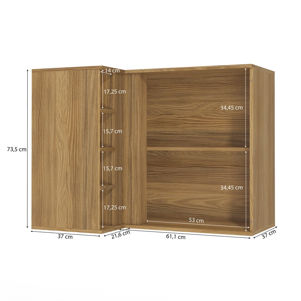 Armário Aéreo de Canto Reto Celeste Kappesberg 100% MDF 1 Porta 4 Nichos Nogueira 98cm