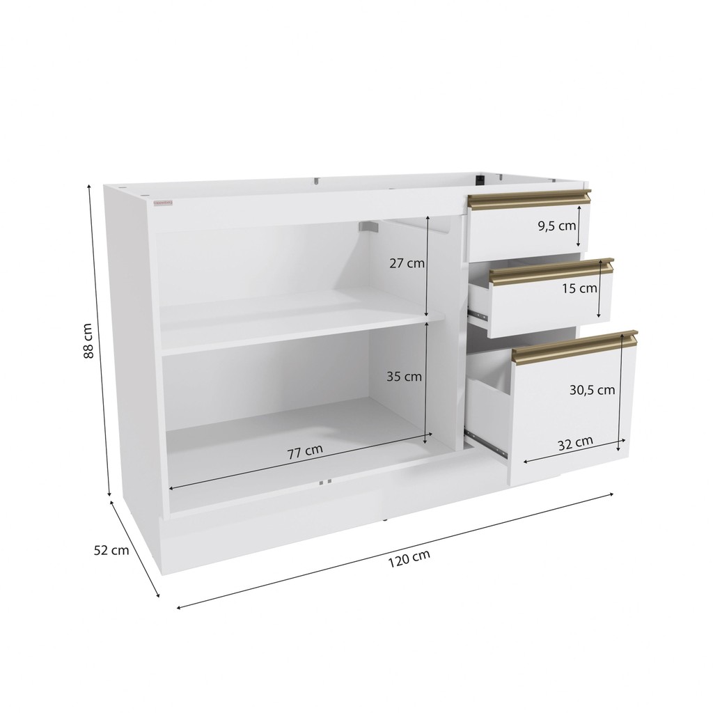 Balcão de Pia Celeste Kappesberg 100% MDF 2 Portas 3 Gavetas Branco 120cm