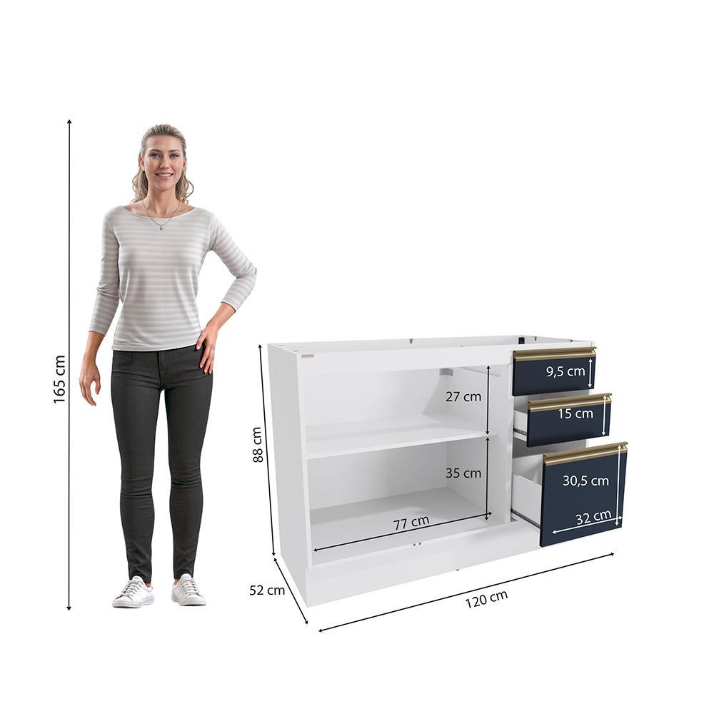 Balcão de Pia Celeste Kappesberg 100% MDF 2 Portas 3 Gavetas Branco/Azul 120cm