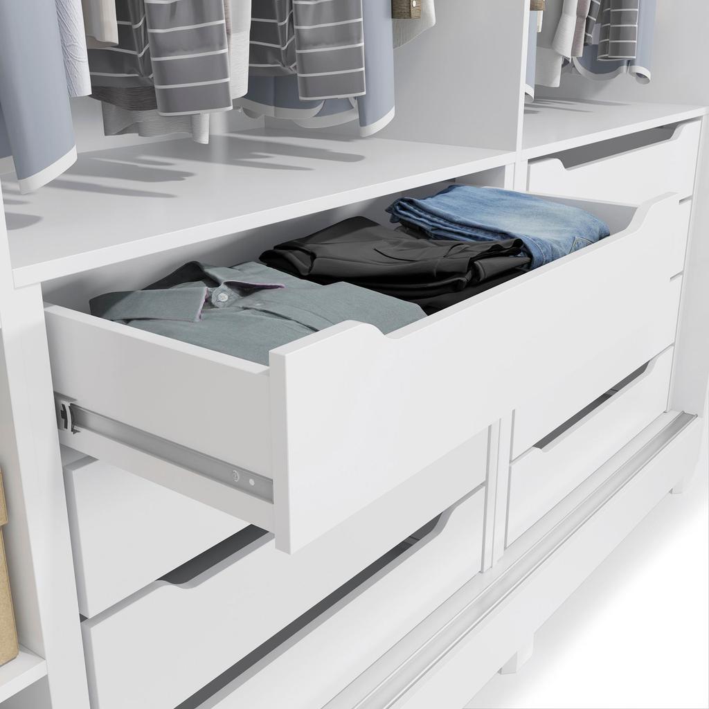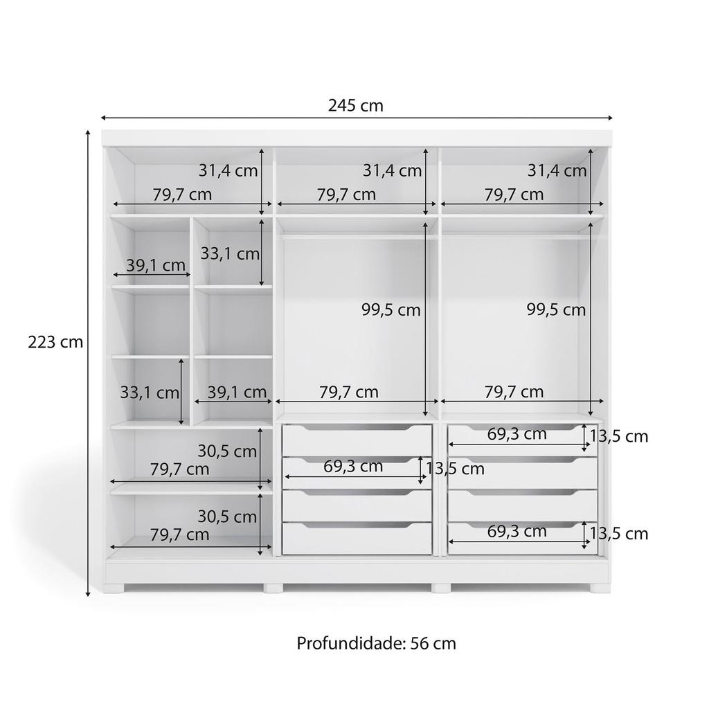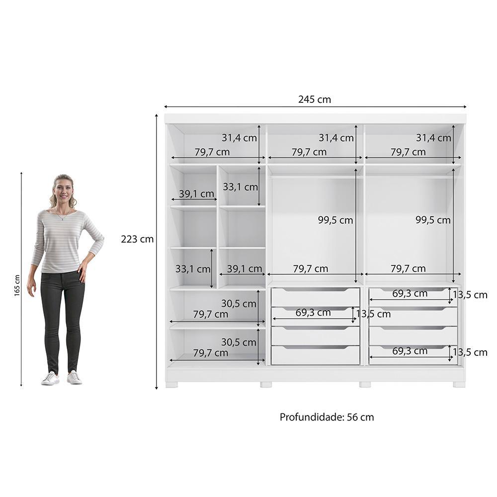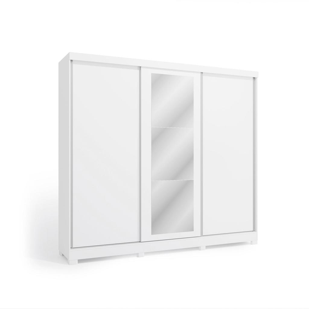 Guarda-Roupa Casal 100% MDF Kappesberg c/Pés e 3 Espelhos 3 Portas de Correr 8 Gavetas Branco