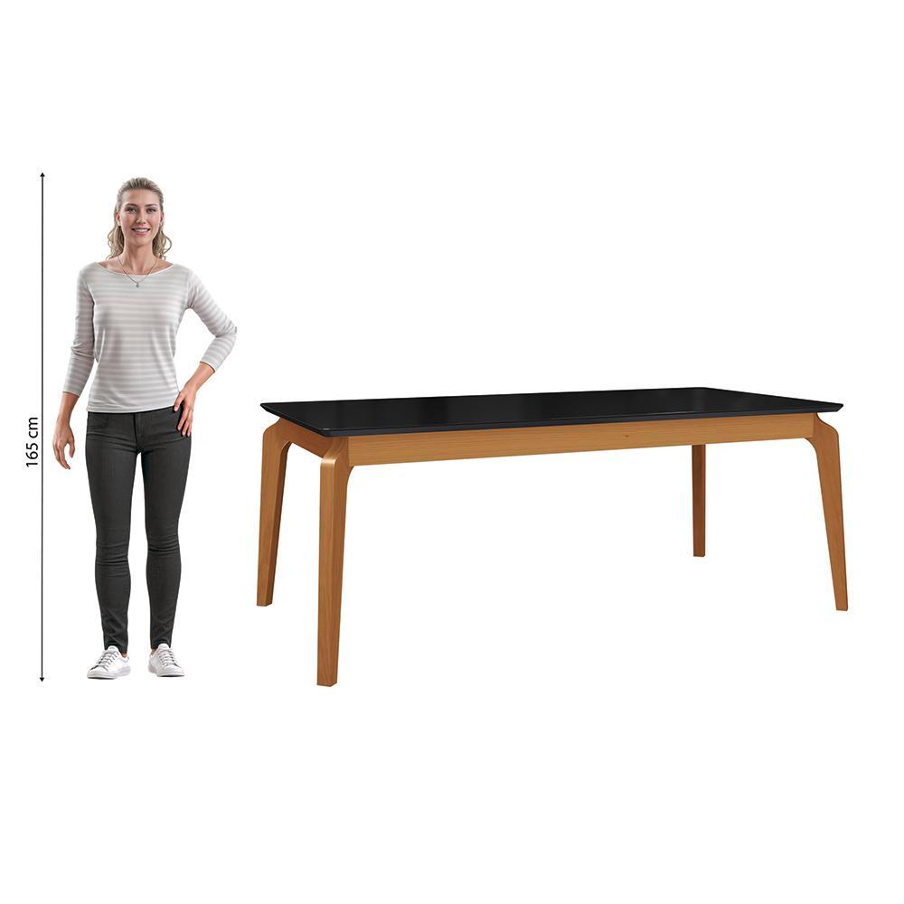 Mesa de Jantar Kappesberg em Madeira Maciça com Tampo de Vidro Preto Fosco 200cm