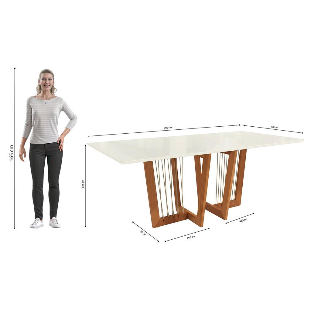 Mesa de Jantar Kappesberg em Madeira Maciça com Tampo de Vidro Off White 200cm