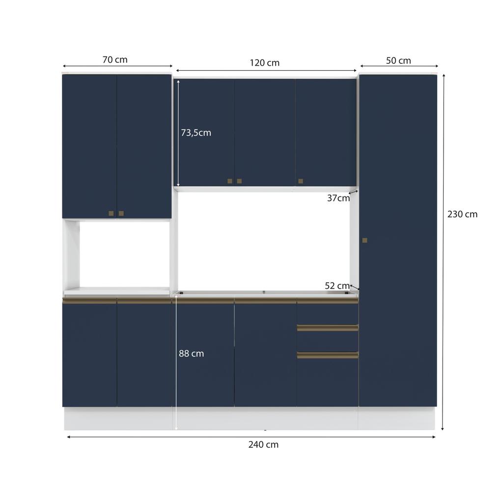 Cozinha Compacta com Kit Forno Celeste Kappesberg 100% MDF Branco/Azul 240cm