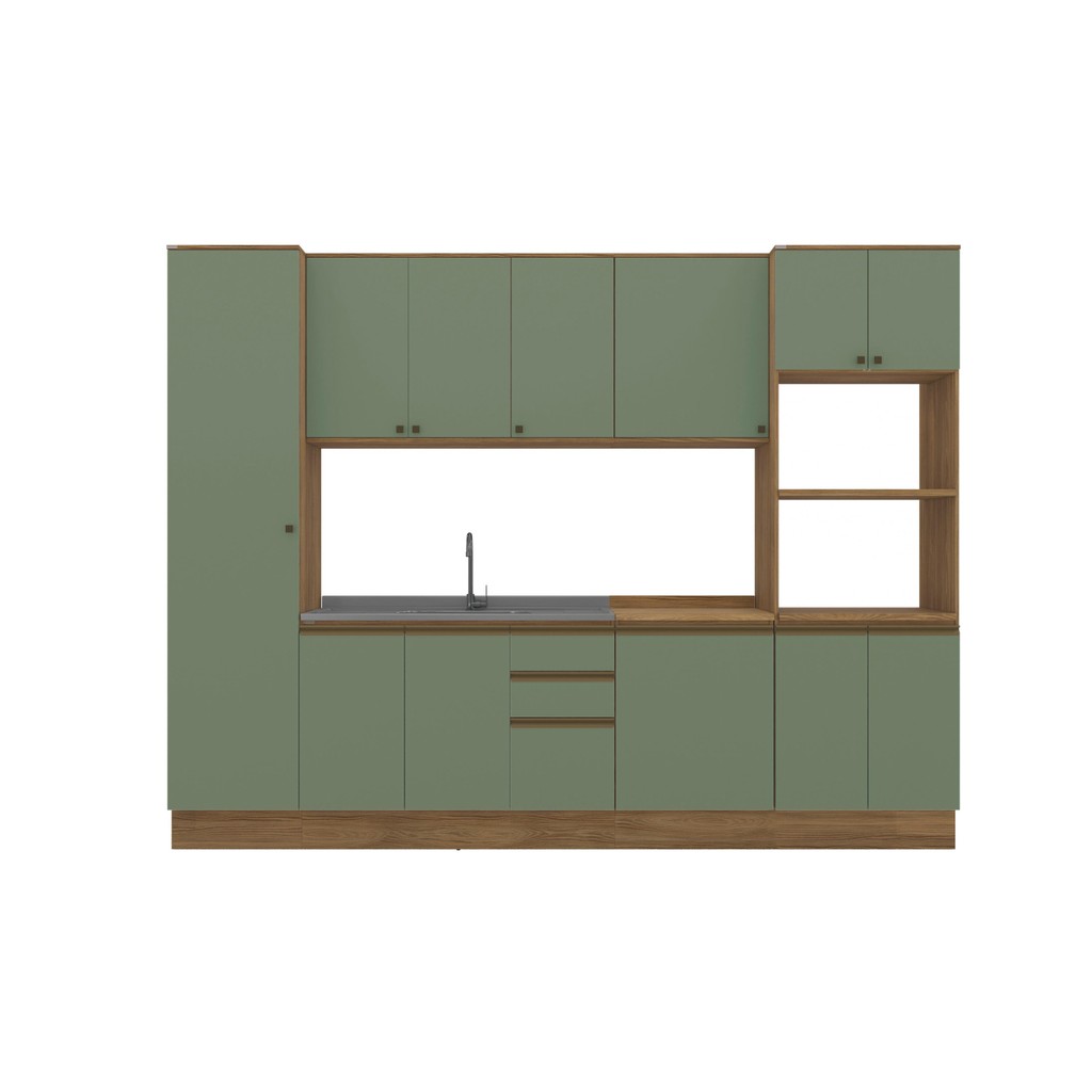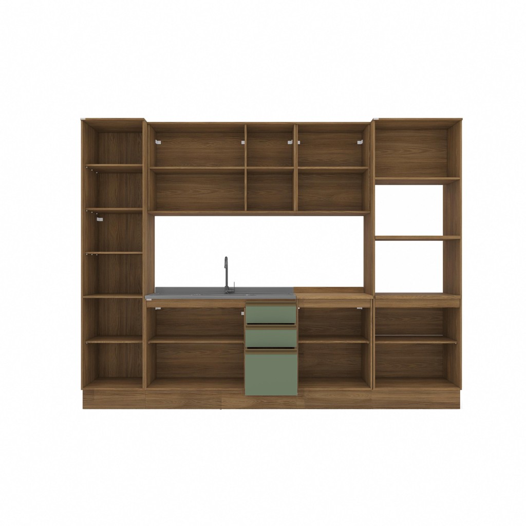 Cozinha Modulada Celeste Kappesberg 100% MDF Nogueira/Verde 300cm