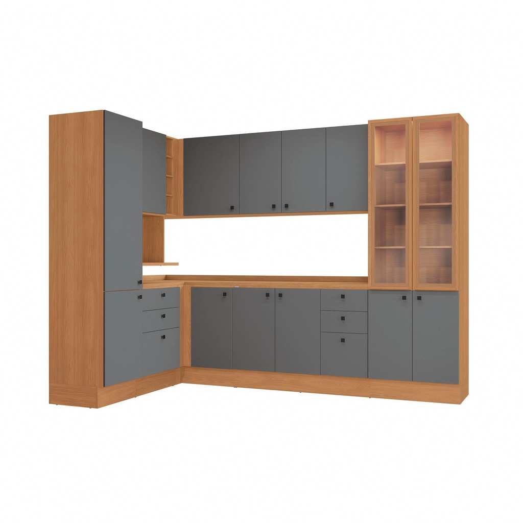 Cozinha Modulada Pixel Kappesberg 100% MDP Canela/Cinza Sagrado 456cm