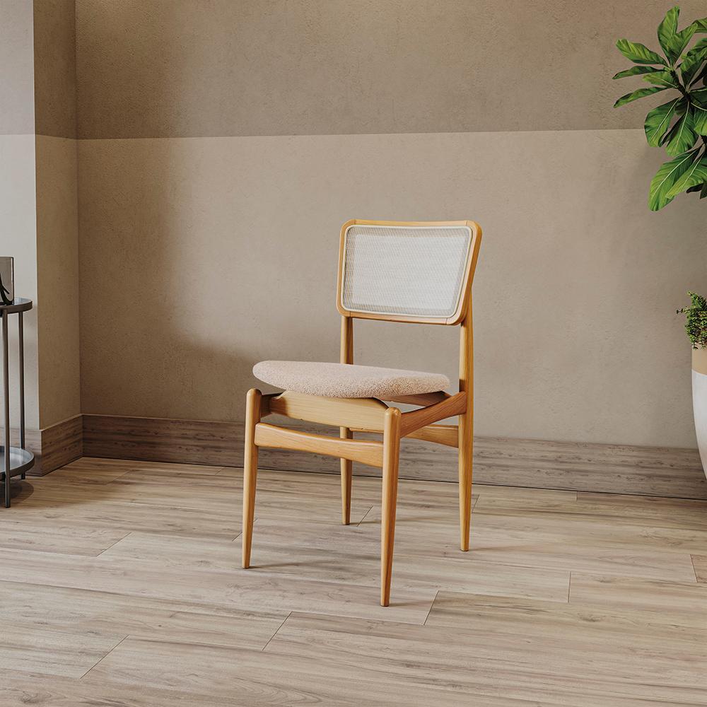 Cadeira Kappesberg em Madeira Maciça Linho Mesclado Areia Tela Bege