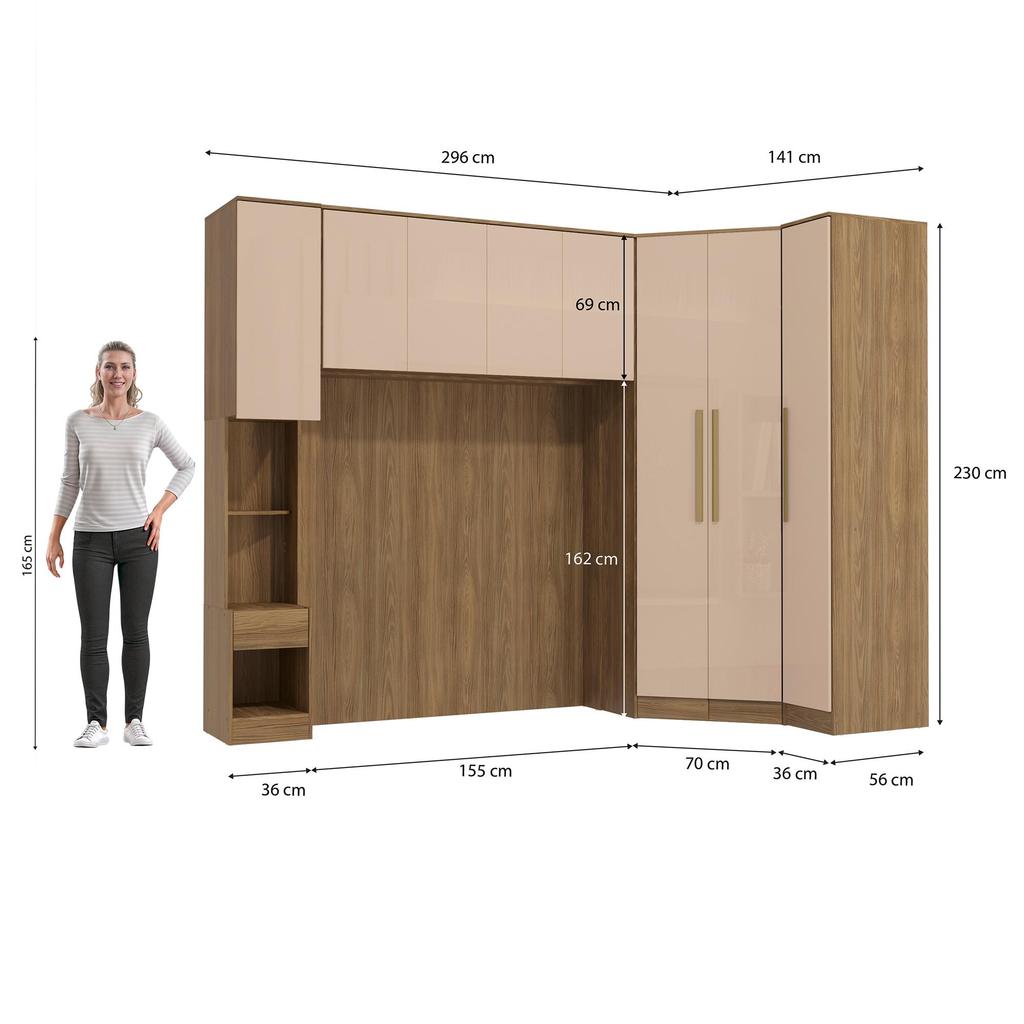 Quarto Completo Kappesberg Adapt 7 Peças Nogueira/Macadâmia