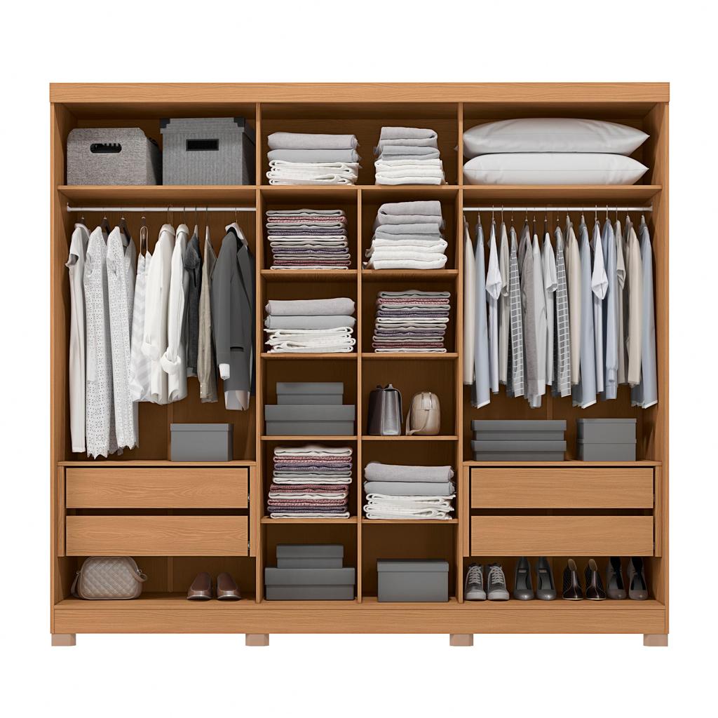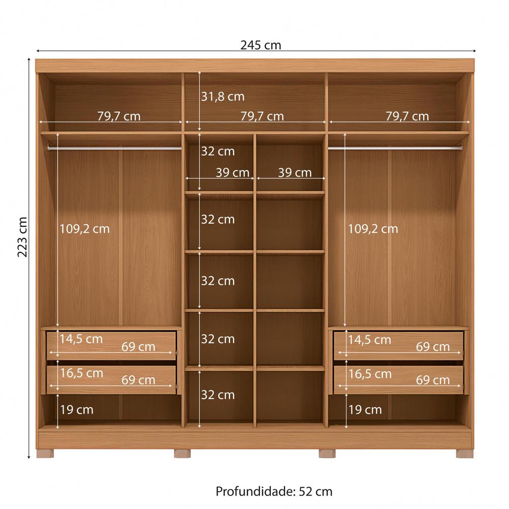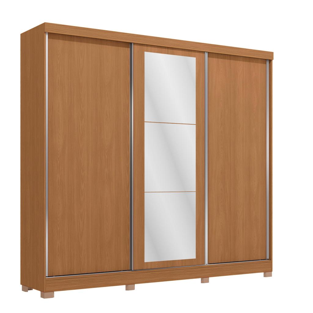 Guarda-Roupa Casal Kappesberg 3 Portas Reversíveis de Correr 3 Espelhos 4 Gavetas Canela
