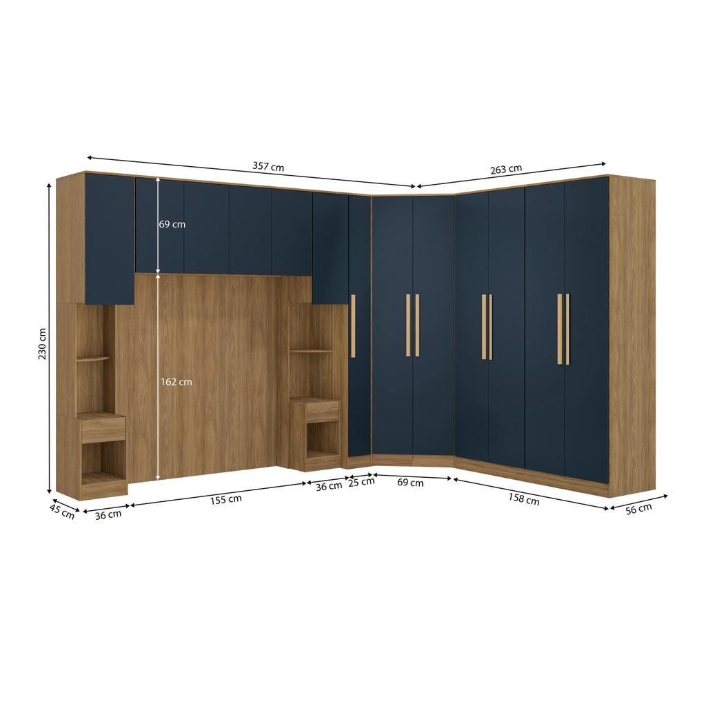 Quarto Modulado Kappesberg Adapt Nogueira/Azul Profundo 8 Peças 357cm x 263cm