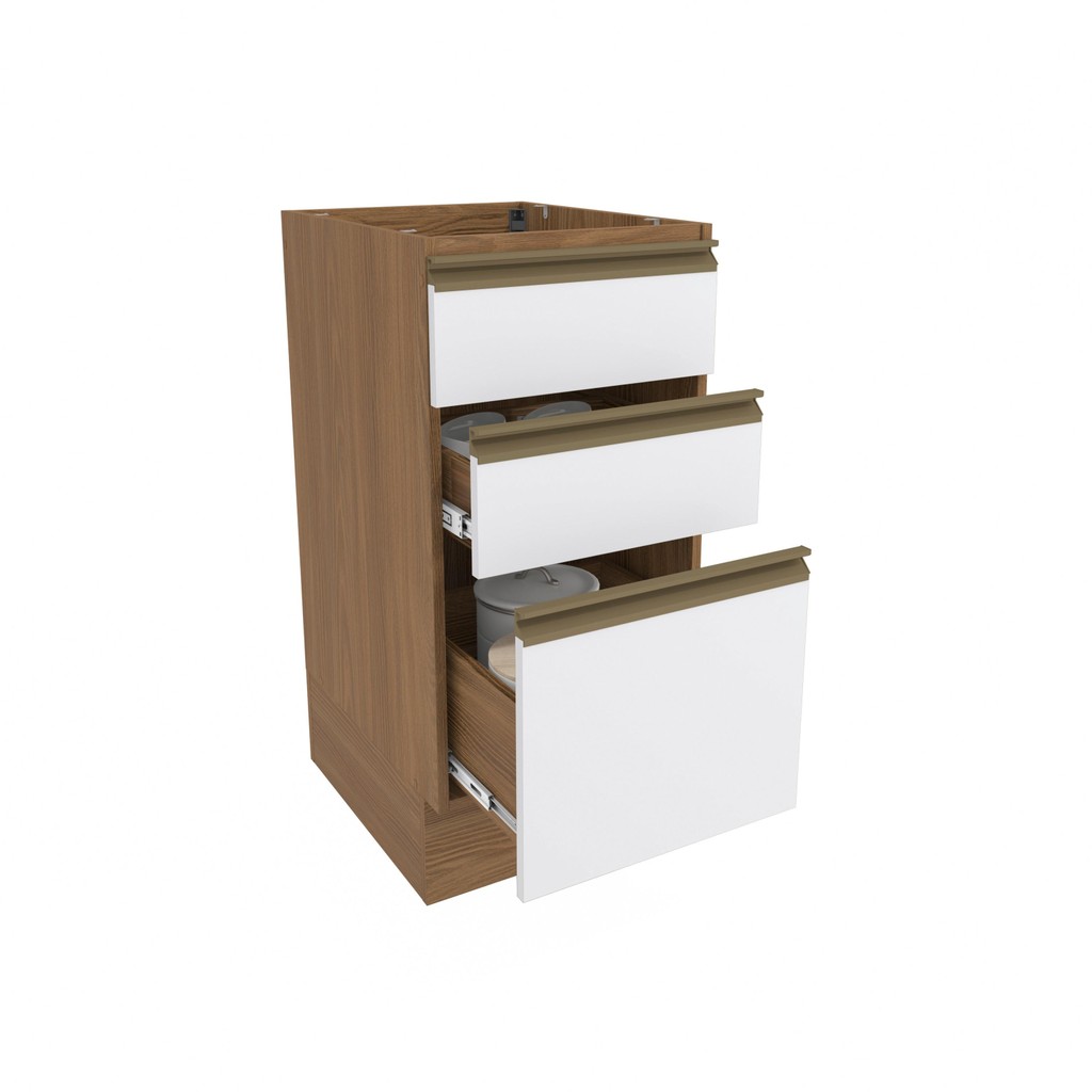 Balcão 3 Gavetas Kappesberg Celeste 100% MDF Nogueira/Branco 40cm