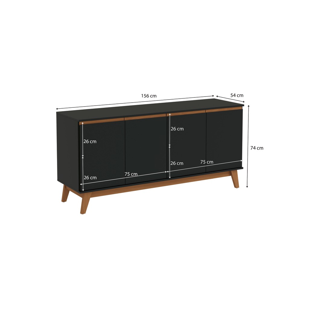 Aparador Kappesberg 4 Portas Preto Fosco 156cm