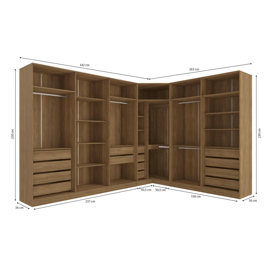 Conjunto Closet Kappesberg Adapt Nogueira 6 Peças 342cm x 263cm