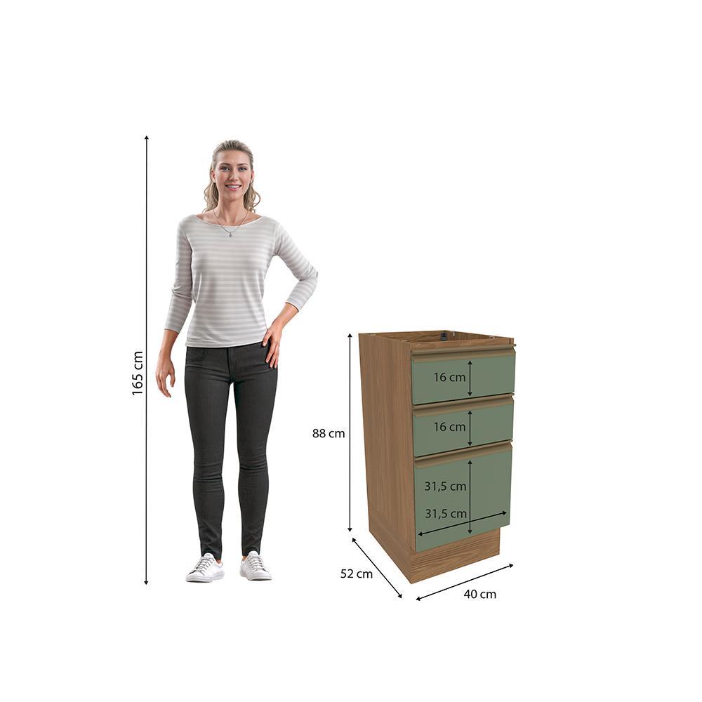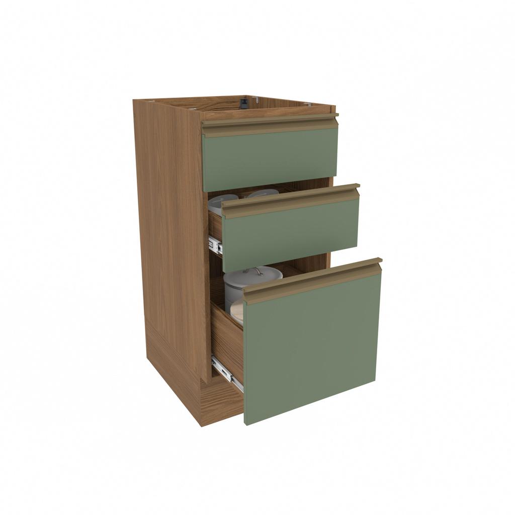 Balcão 3 Gavetas Kappesberg Celeste 100% MDF Nogueira/Verde Oliva 40cm