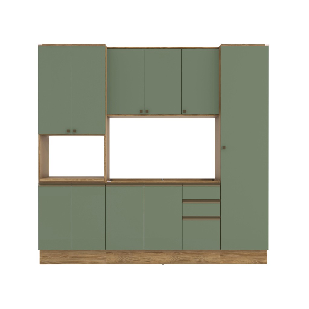 Cozinha Compacta com Kit Forno Celeste Kappesberg 100% MDF Nogueira/Verde 240cm