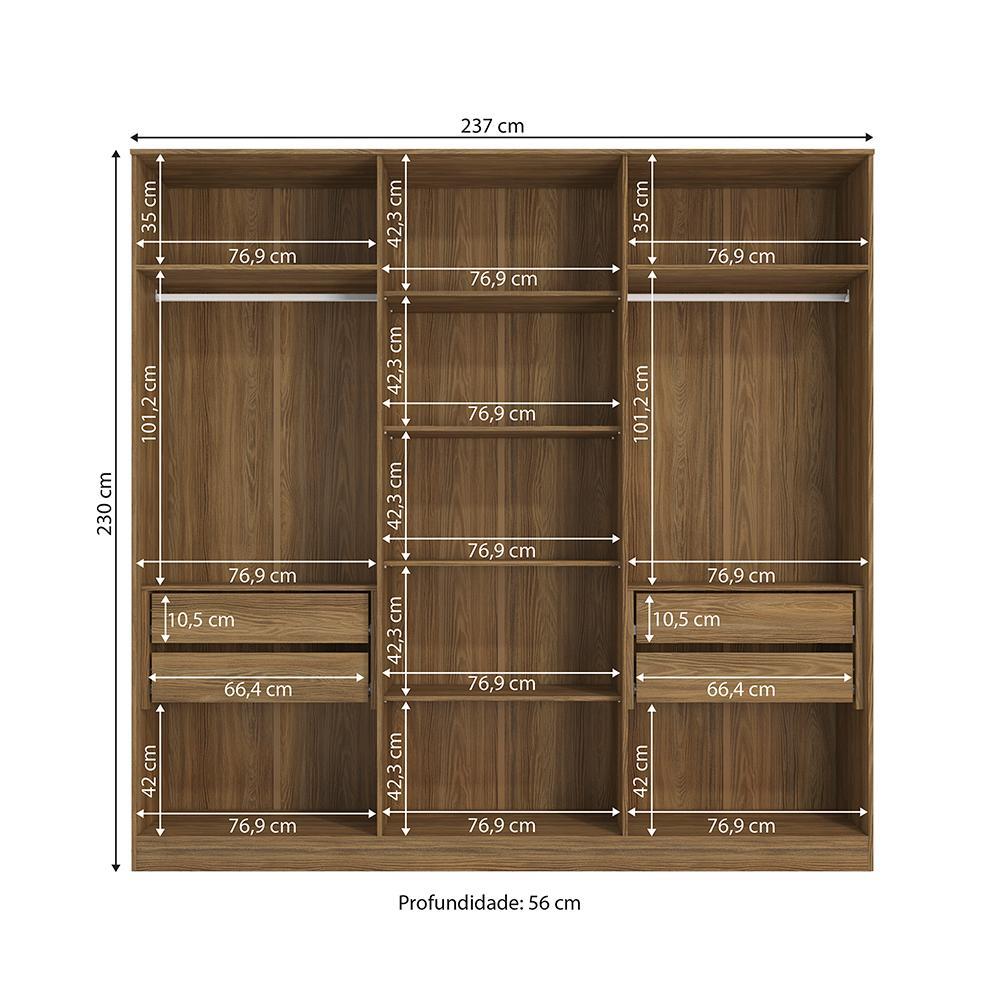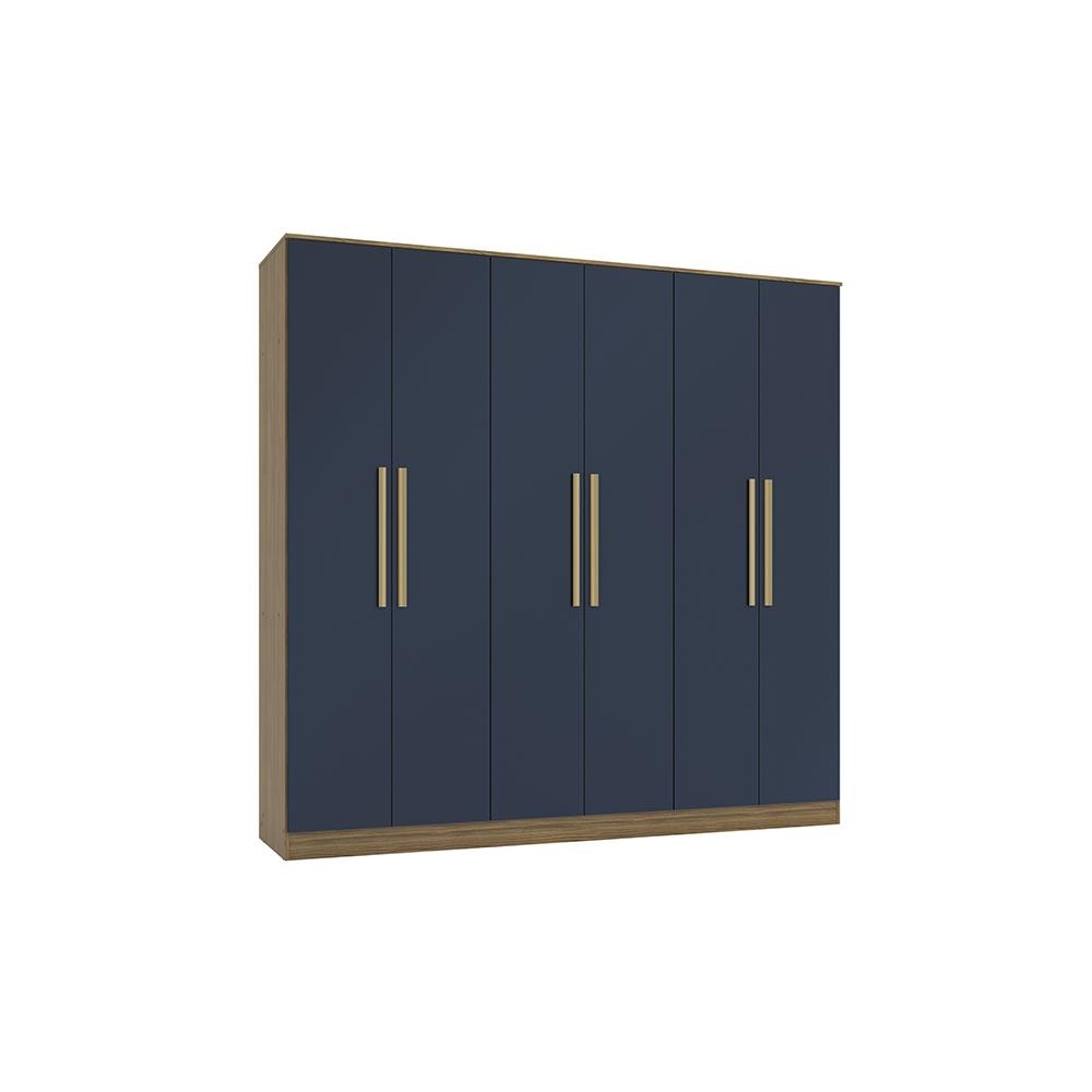 Guarda-Roupa 6 Portas 4 Gavetas Kappesberg Adapt Nogueira/Azul Profundo 237cm