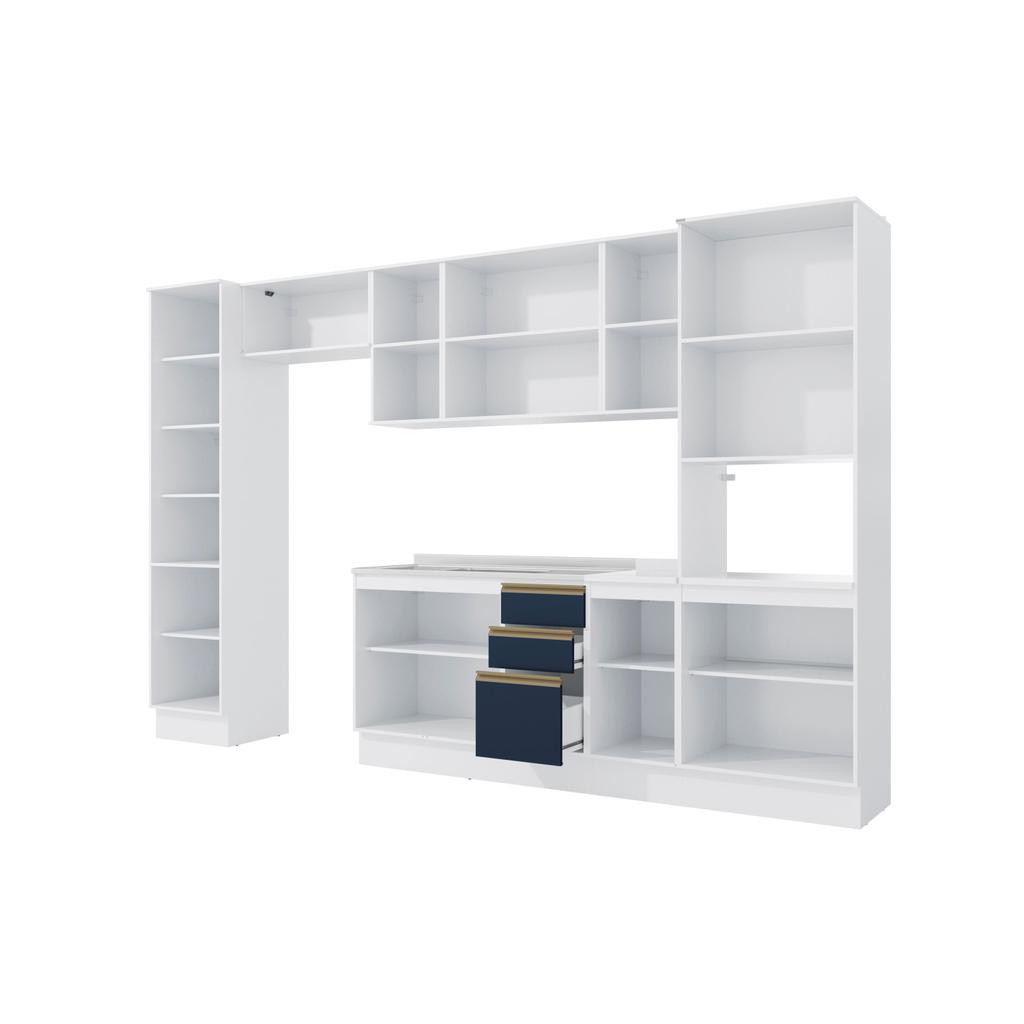 Cozinha Modulada Celeste Kappesberg 100% MDF Branco/Azul 360cm