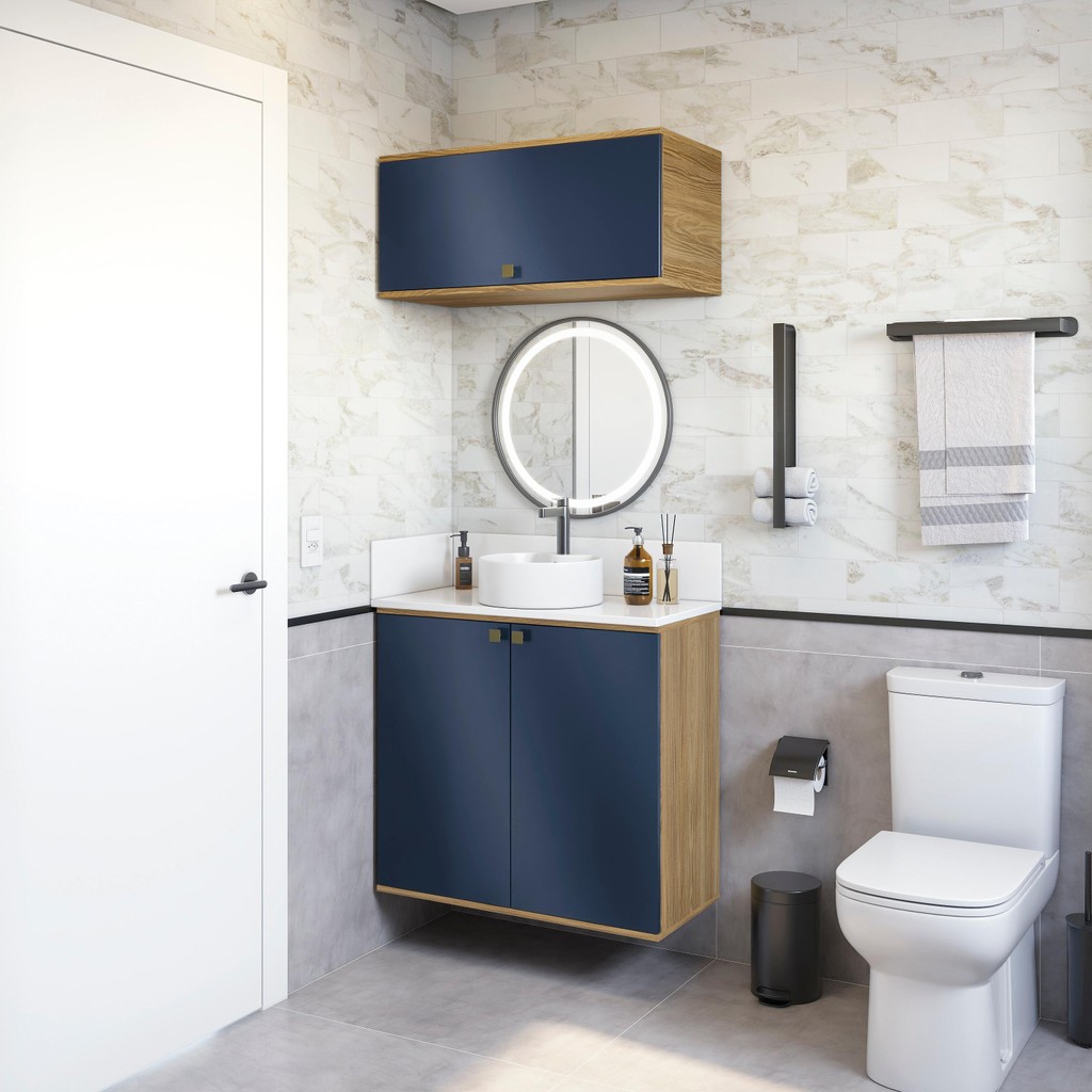 Conjunto para Banheiro com Basculante Kappesberg Celeste 2 Peças Nogueira/Azul 80cm