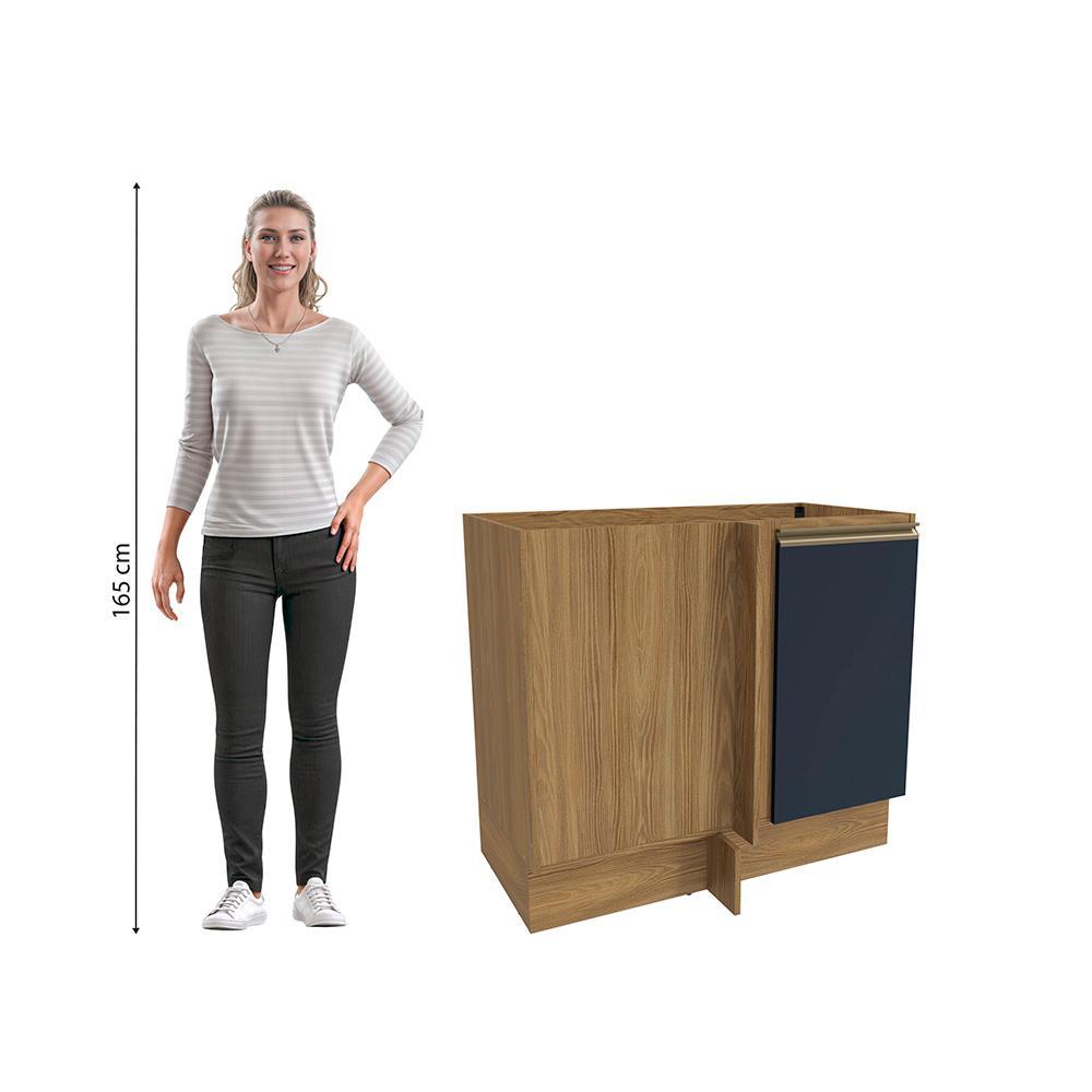 Balcão de Canto Reto Celeste Kappesberg 100% MDF 1 Porta Nogueira/Azul 98cm