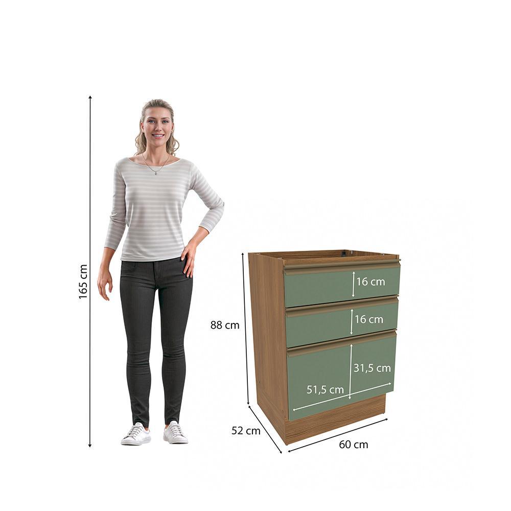 Balcão 3 Gavetas Kappesberg Celeste 100% MDF Nogueira/Verde Oliva 60cm