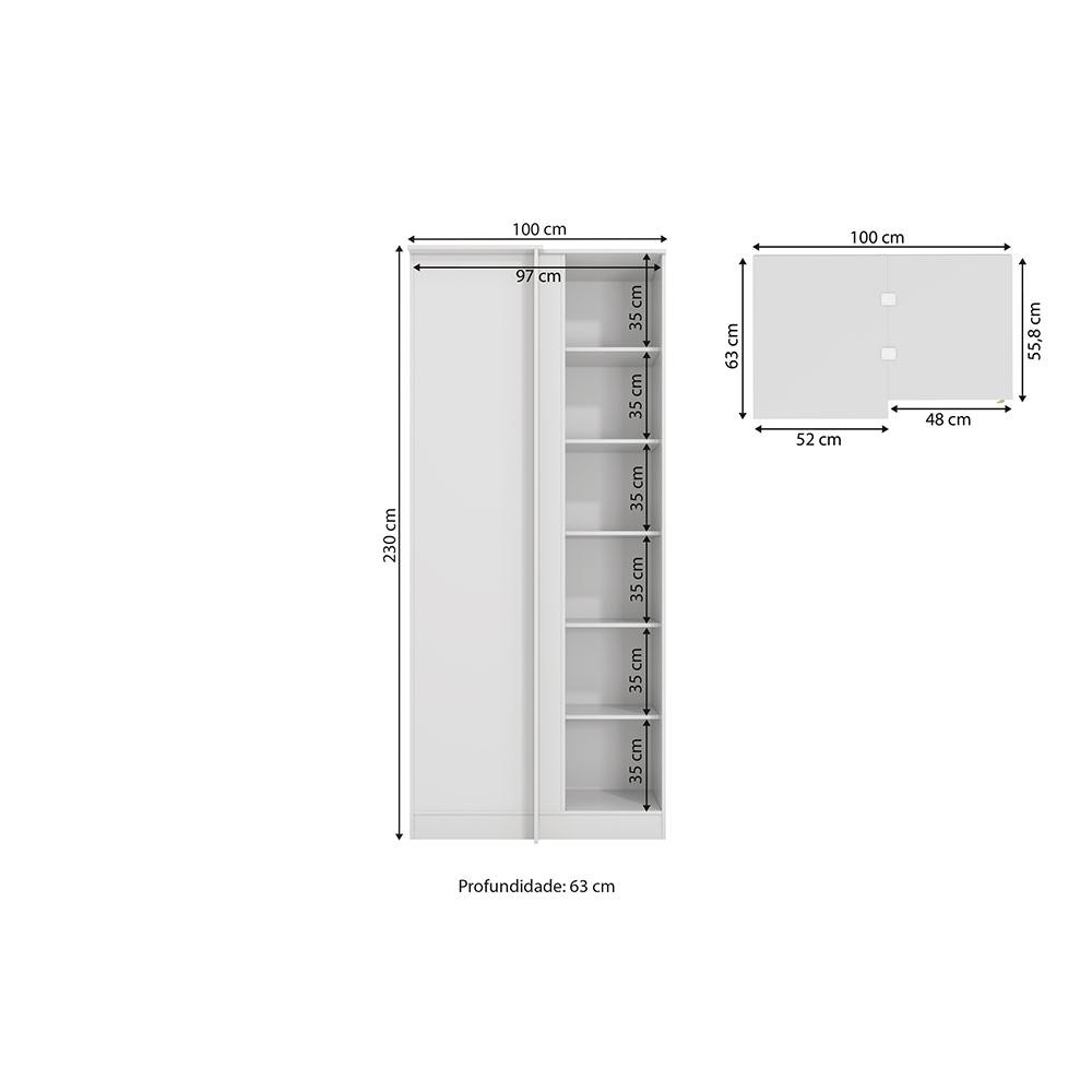 Guarda-Roupa de Canto Reto Sem Portas Closet Kappesberg Adapt Branco 100cm