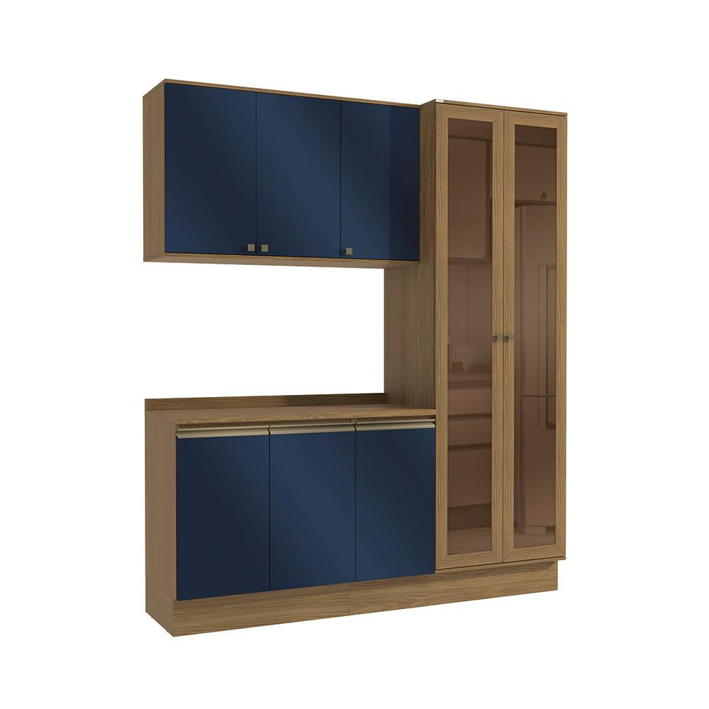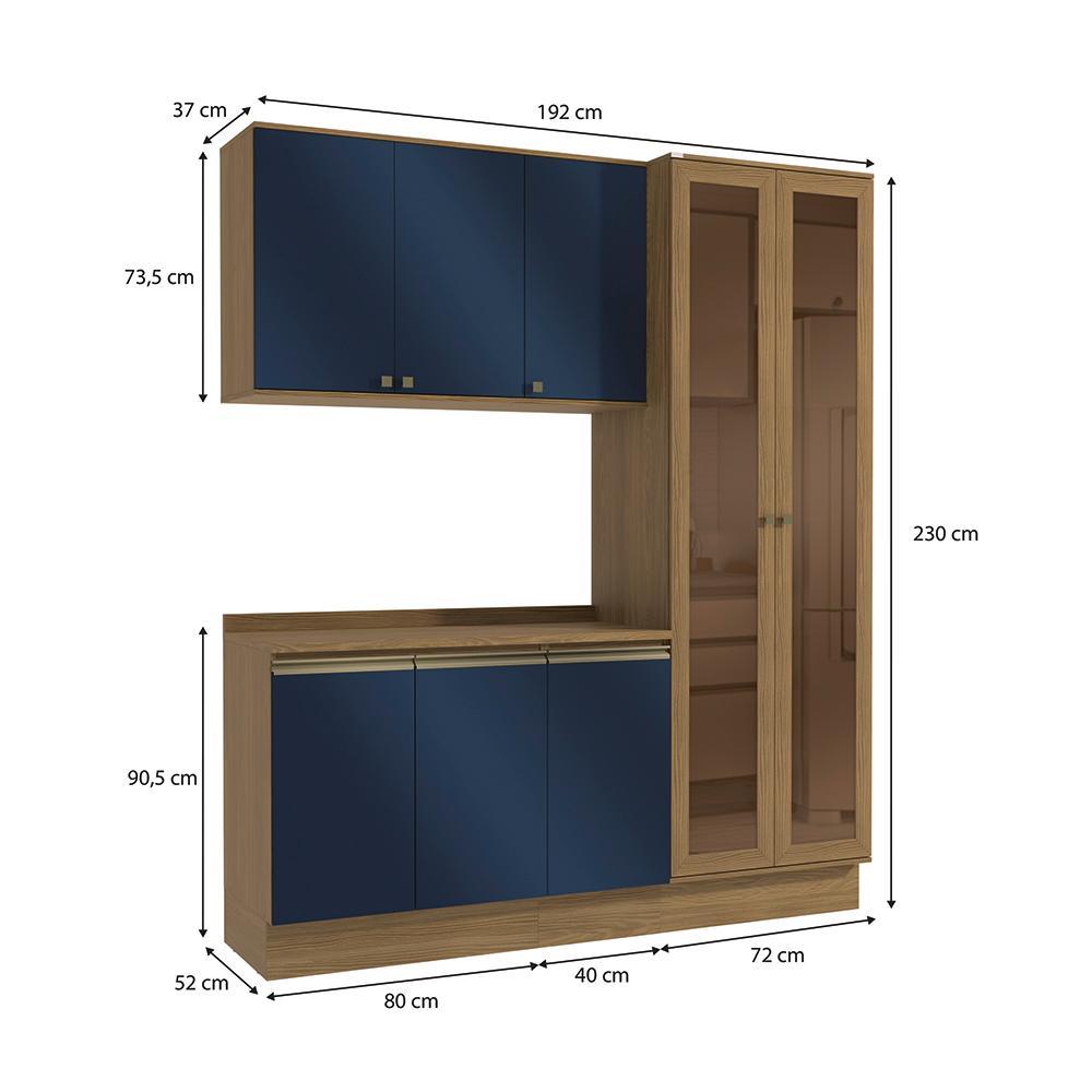 Armário de Cozinha Compacta 100% MDF 192cm Nogueira/Azul Profundo Celeste Kappesberg