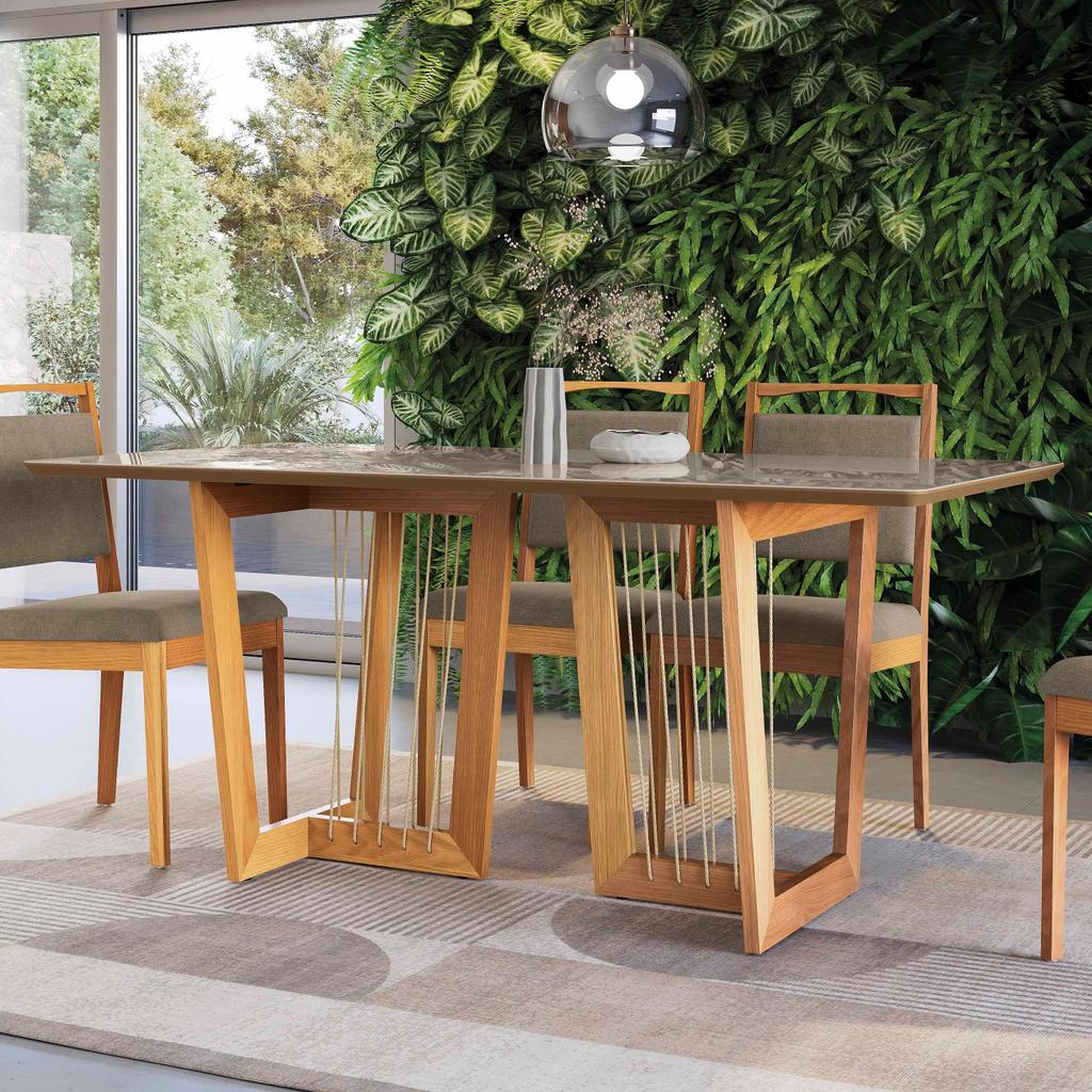 Conjunto Sala de Jantar Lina em Madeira Maciça 6 Cadeiras Linho Fendi