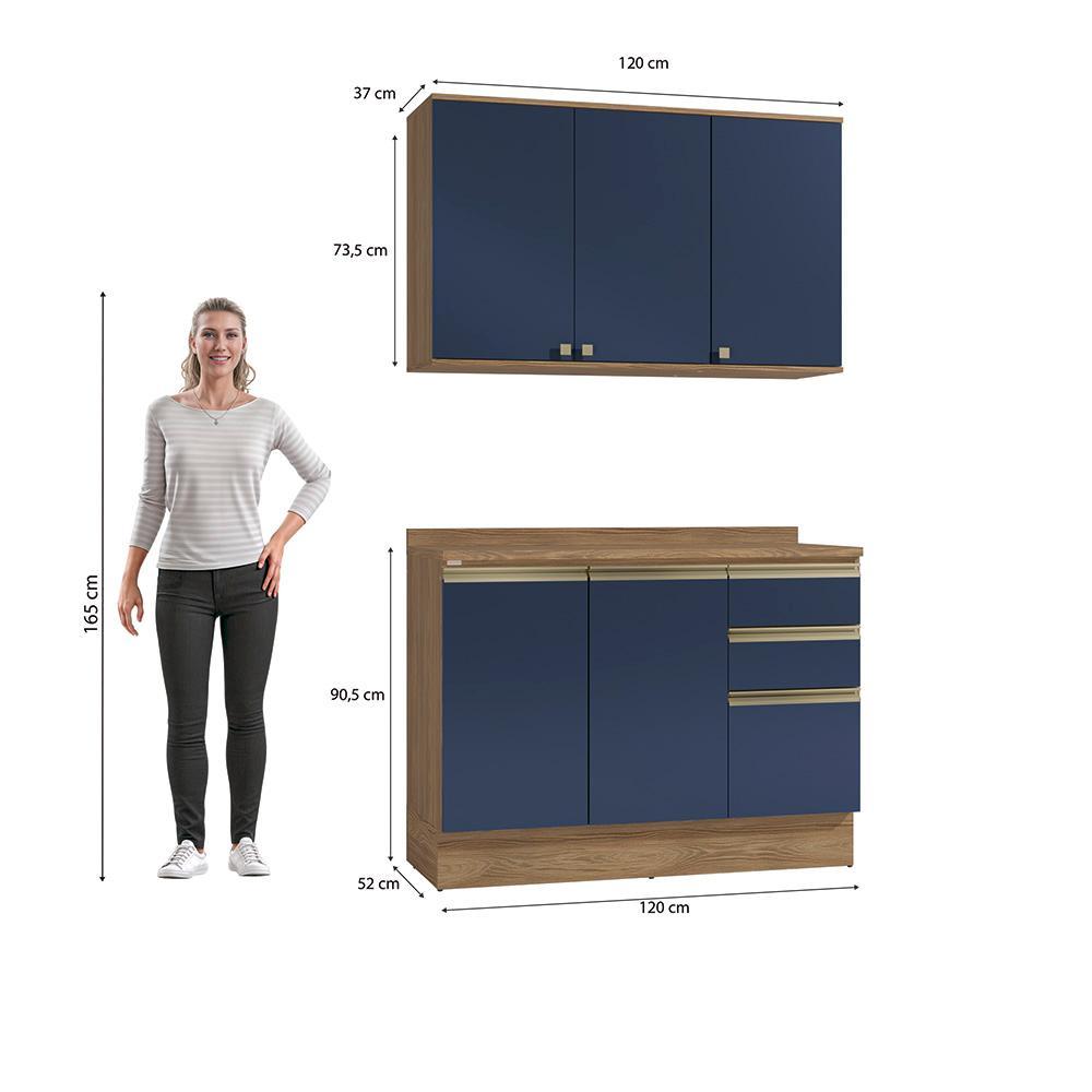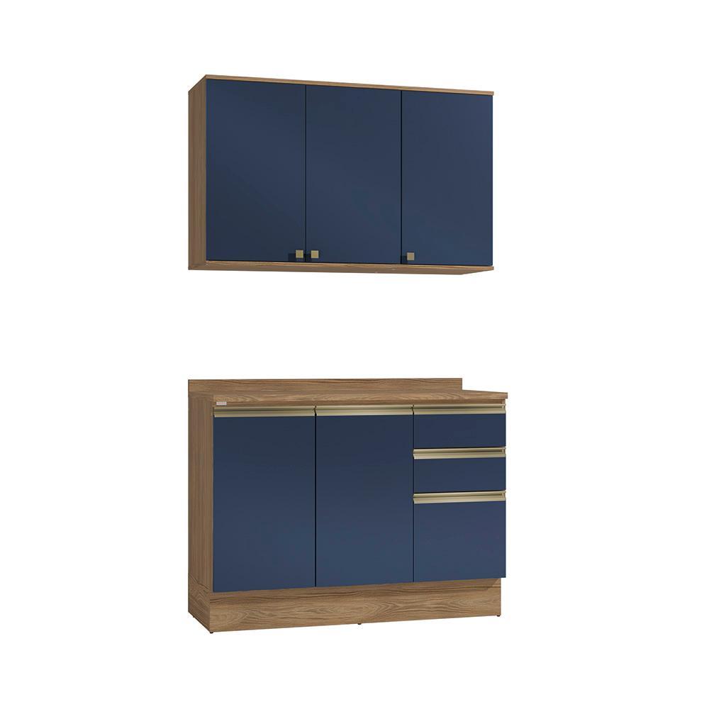 Armário de Cozinha Compacta 100% MDF 120cm Nogueira/Azul Profundo Celeste Kappesberg