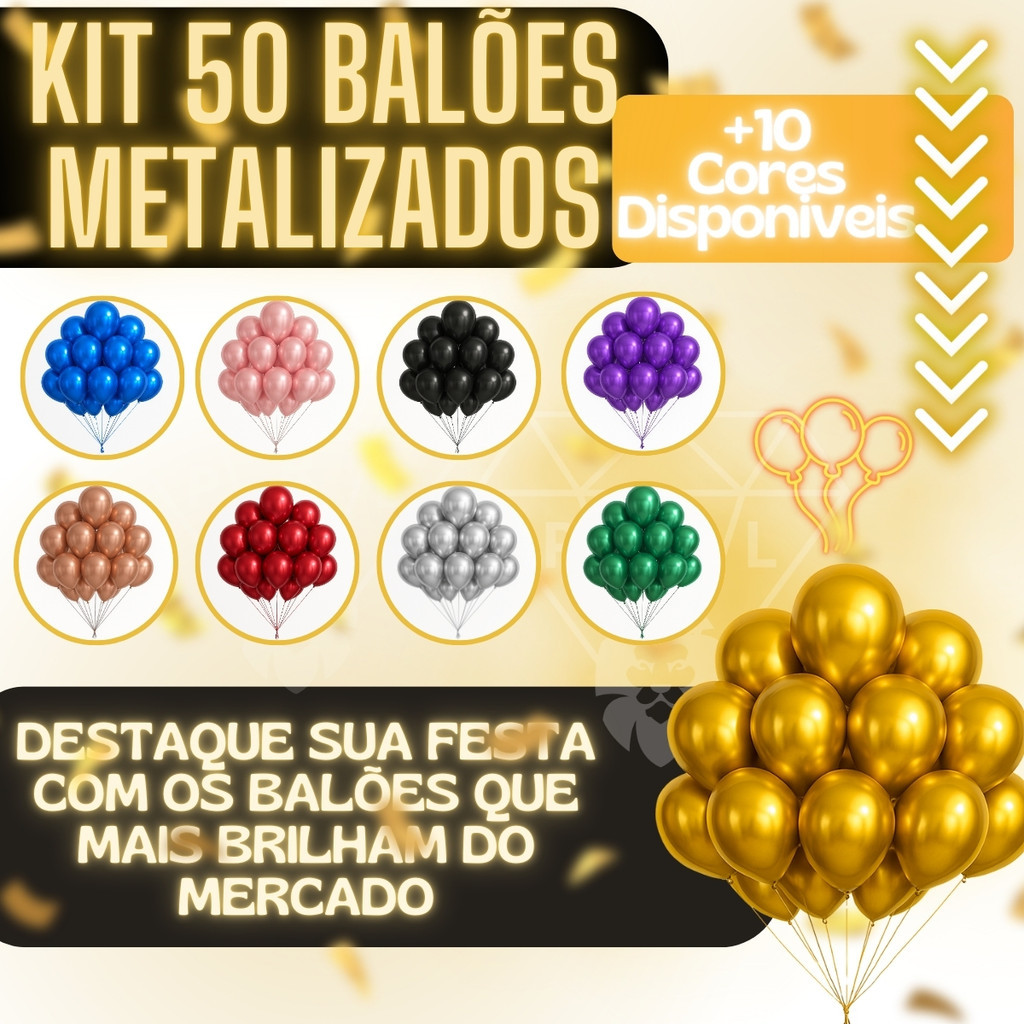 50 Balão Bexiga Metalizada Nº 10 Decoração De Festa Metalizada Aniversário Casamento Evento Painel