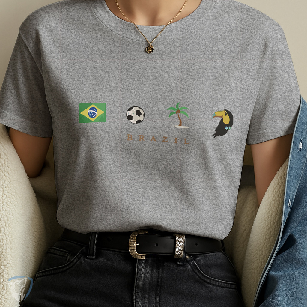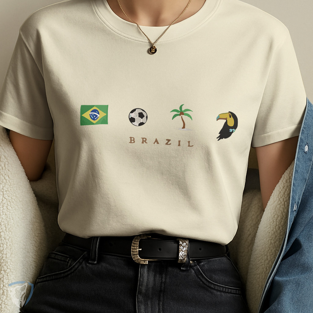 Camiseta Unissex Brasil Ícones Estampa Minimalista com Símbolos Brasileiros