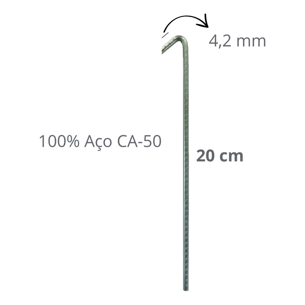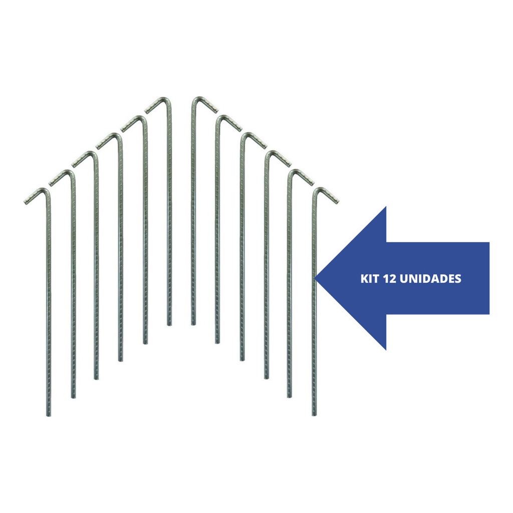 Kit 12 Estacas Aço Ca-50 4,2mm Reforçada Solo Duro Camping
