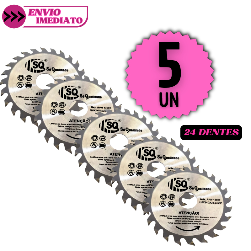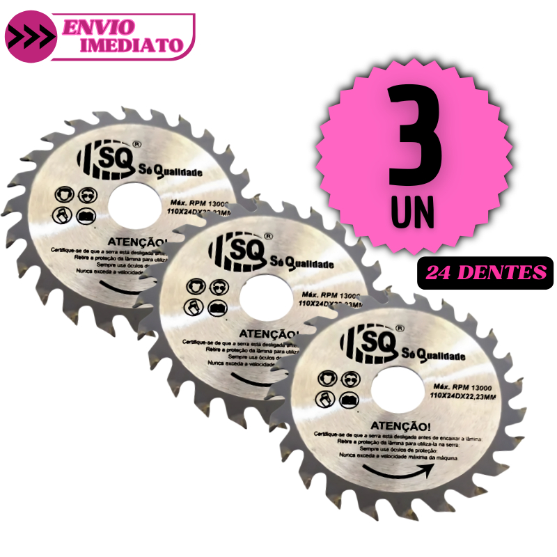 Jogo 10 Disco de Corte 24 Dentes para Madeira 4" Serra Circular Pedreiro Construção