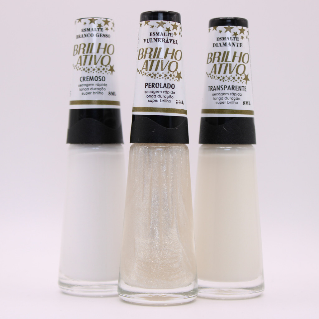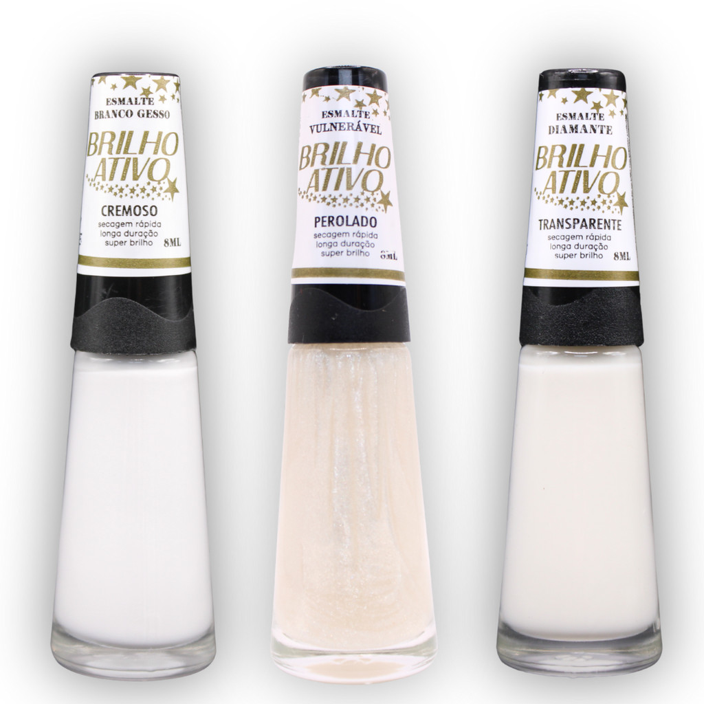 Kit 3 Esmaltes Brilho Ativo Francesinha Branco Transparente Pérola Unhas Perfeitas da Manicure