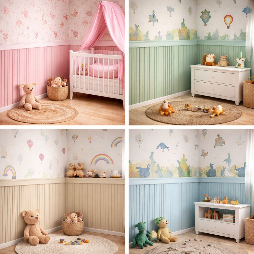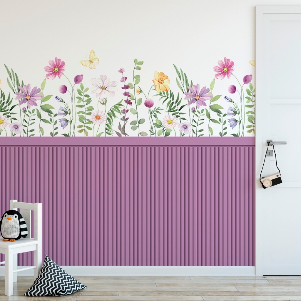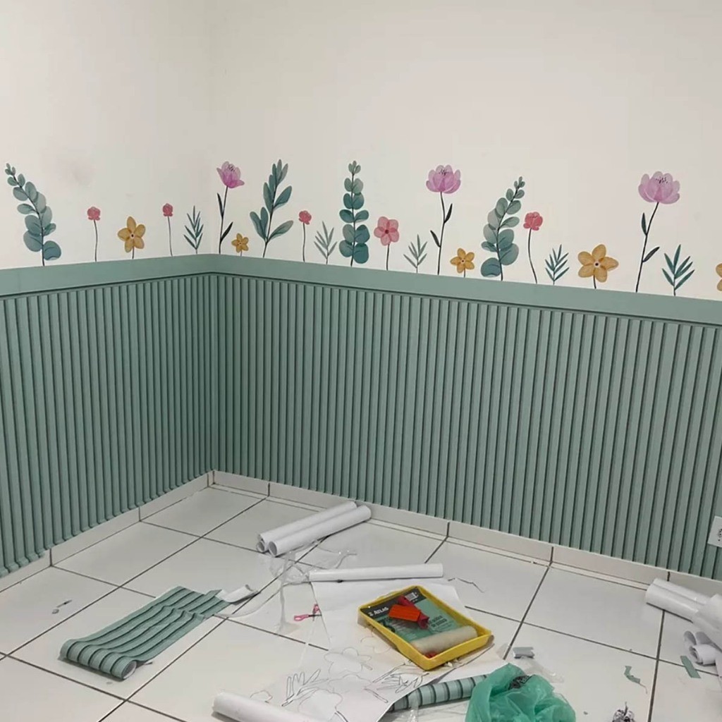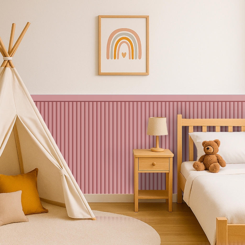 Papel De Parede Adesivo Ripado Infantil Meia Parede Auto Adesivo — Fácil De Aplicar