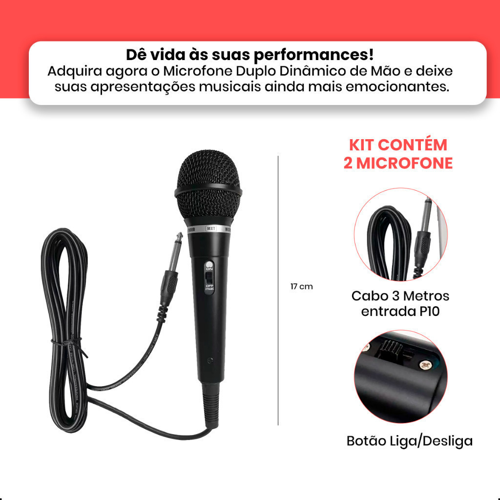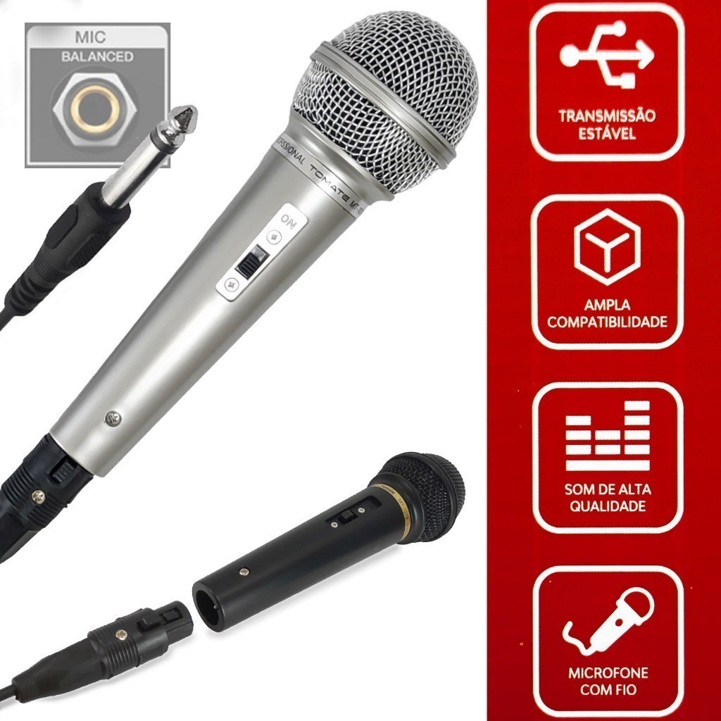 Kit Microfone Dinamico Com Fio Profissional Aplicável a Karaoke Palestra Show Original Comprimento da linha 3 metros