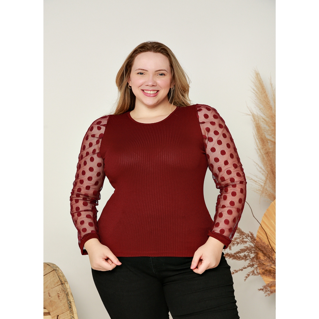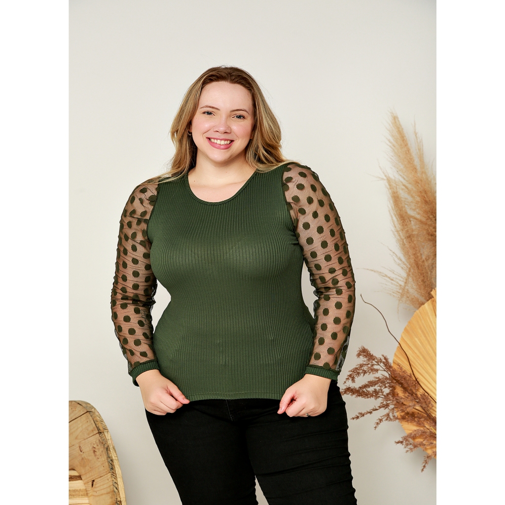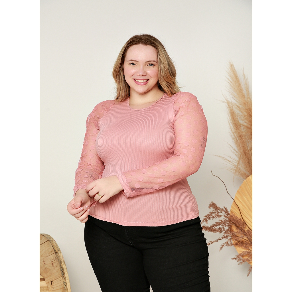 Blusa Feminina Canelada Manga Tule Comprida ( com leve defeito )
