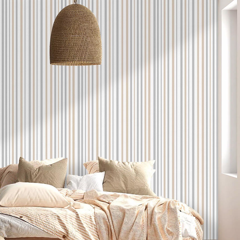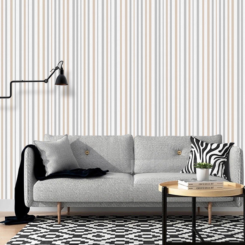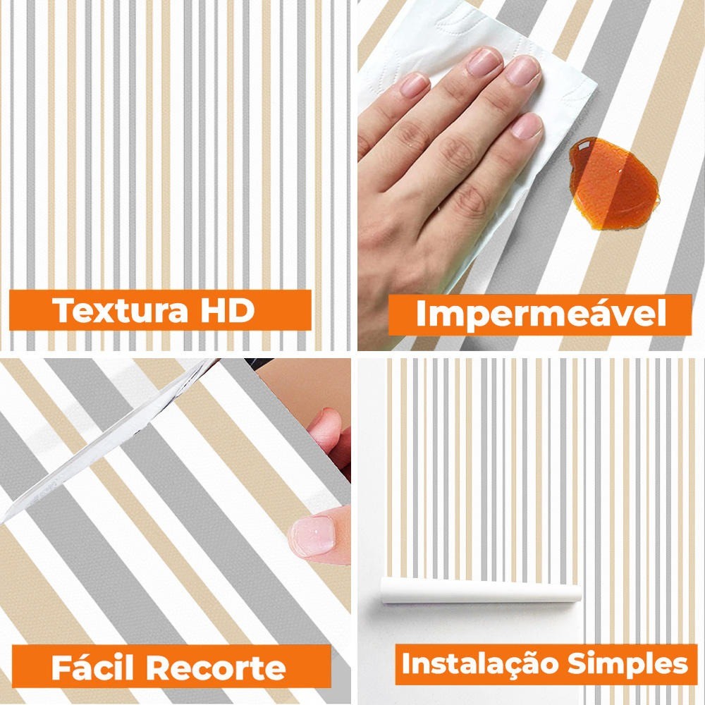 Adesivo PVC tipo Papel de Parede Lavavel Listrado Bege e Cinza 500x60cm