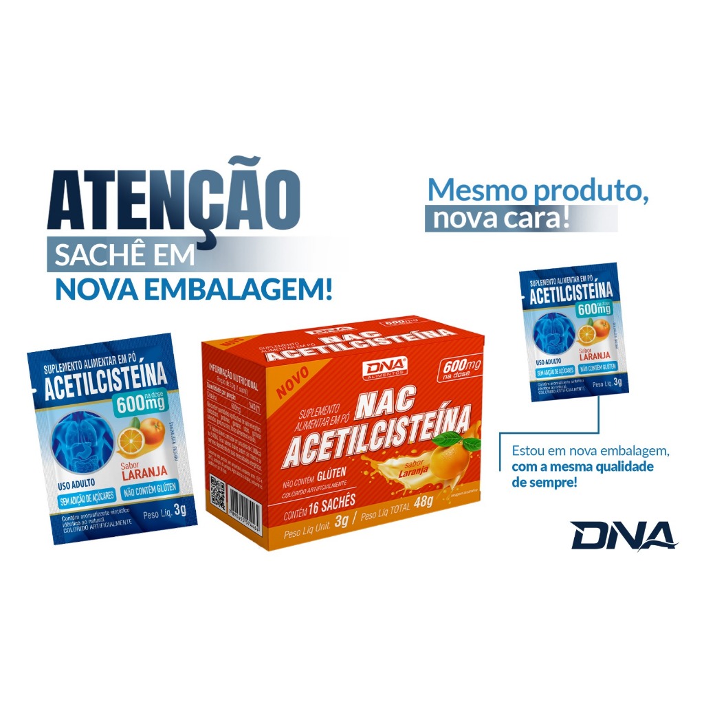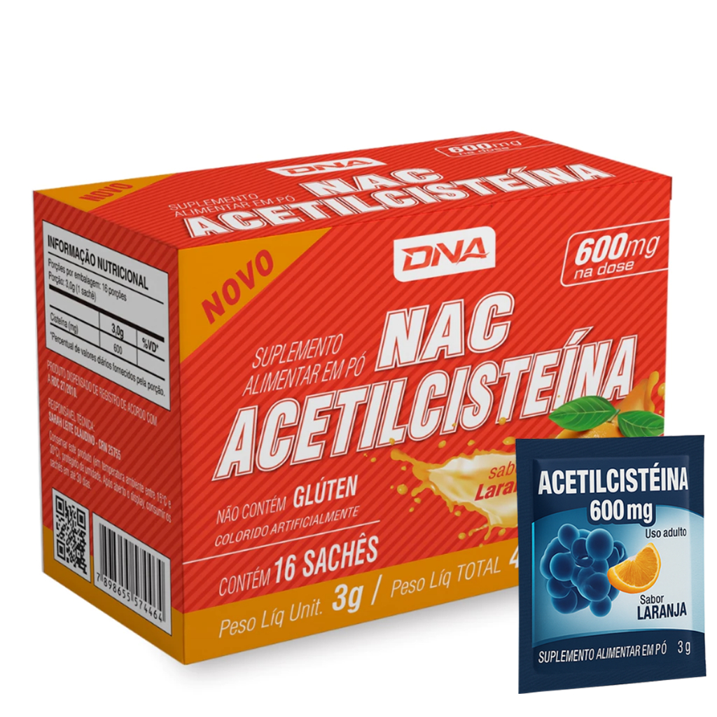 NAC Acetilcisteína 16 Sachês 600mg - Dna Suplementos