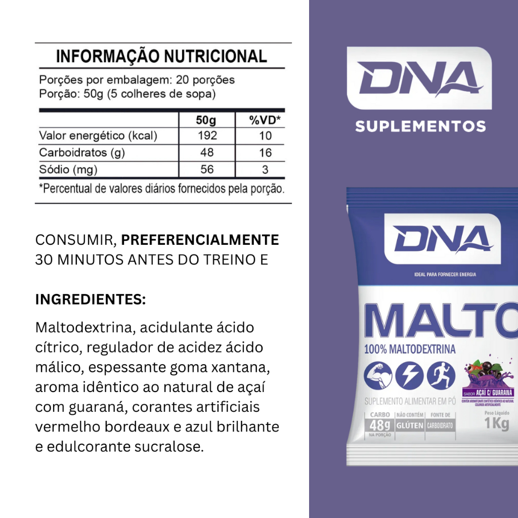 Malto Dextrina Rápida Absorção Pré Treino 1kg Sabor Açaí com guaraná - Dna Suplementos