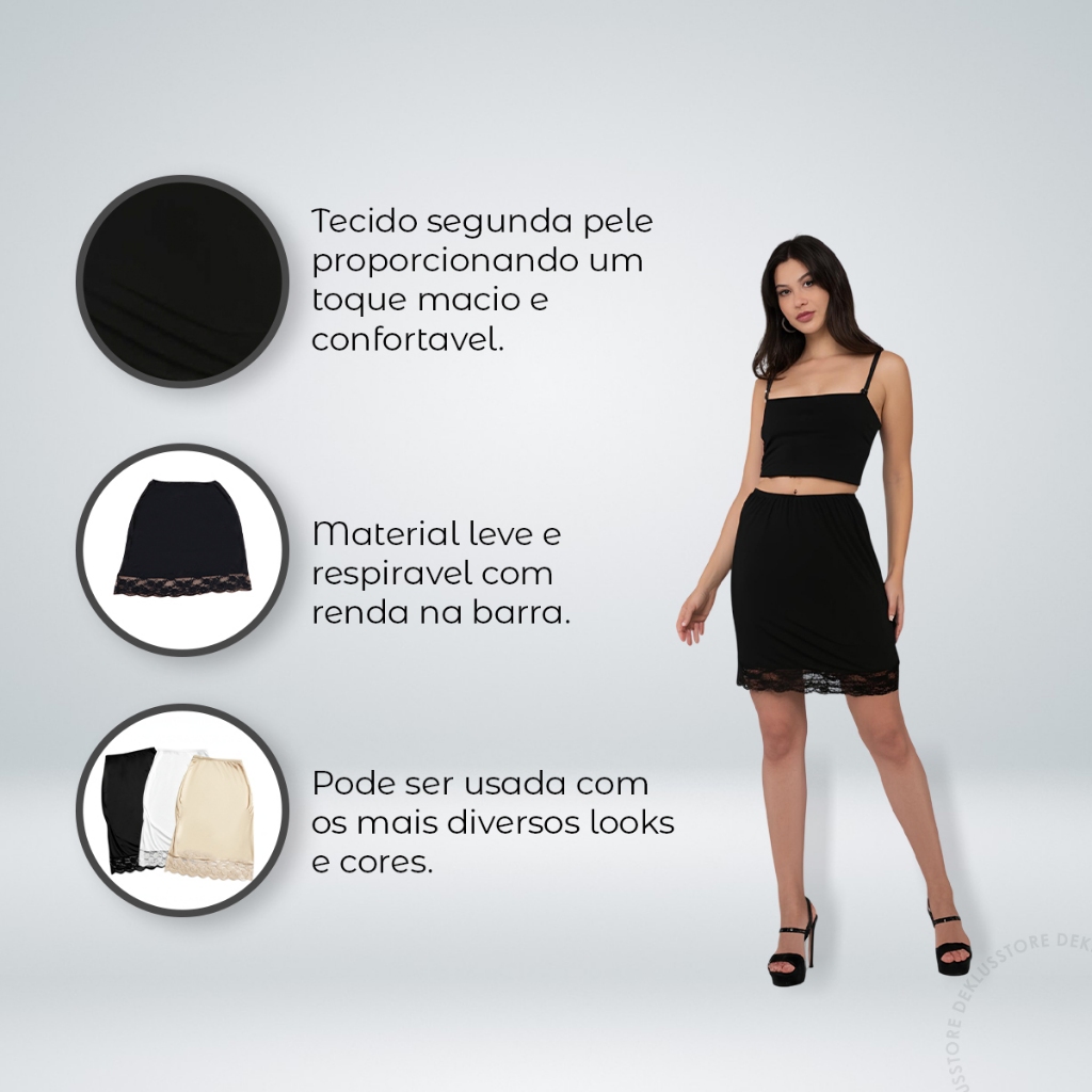 Anagua Saia Saiote Feminino Renda Moda Senhora Segunda Pele Combinação