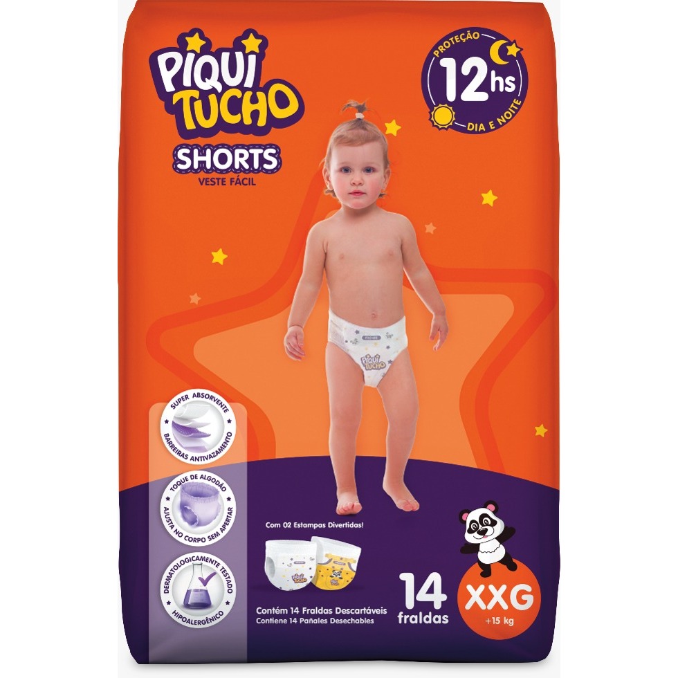 Fralda Descartável Piquitucho Shorts Tamanho XXG 14 unidades FeelClean Cremer