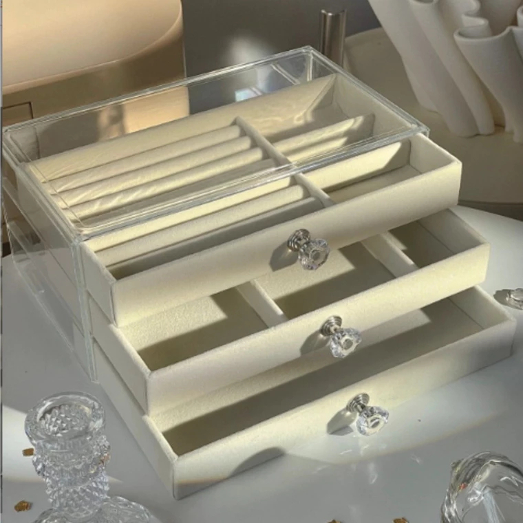 Porta Joia Acrílico Luxo com 3 Camadas- Brinco/ Anel/ Colar/ Pulseira