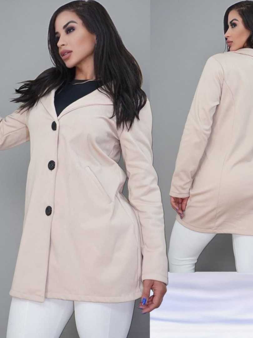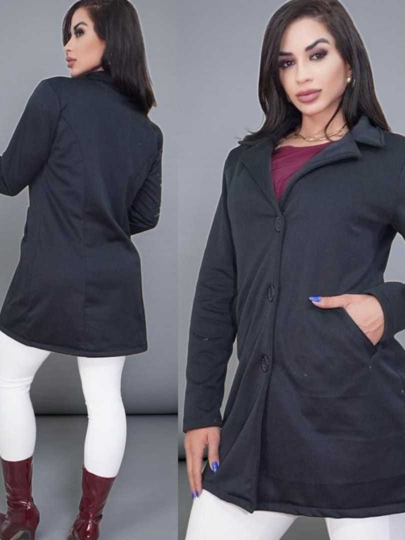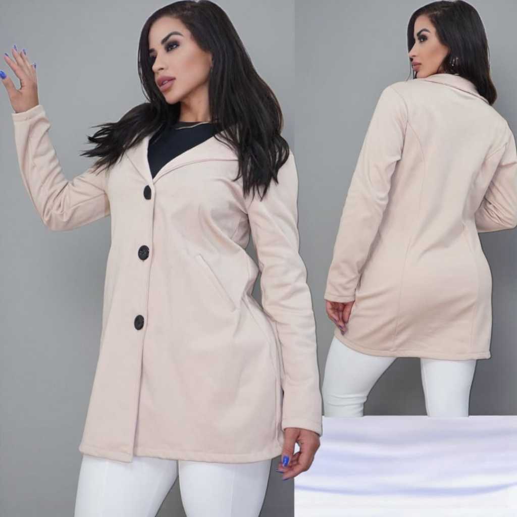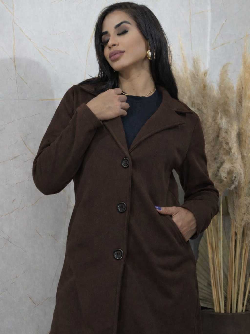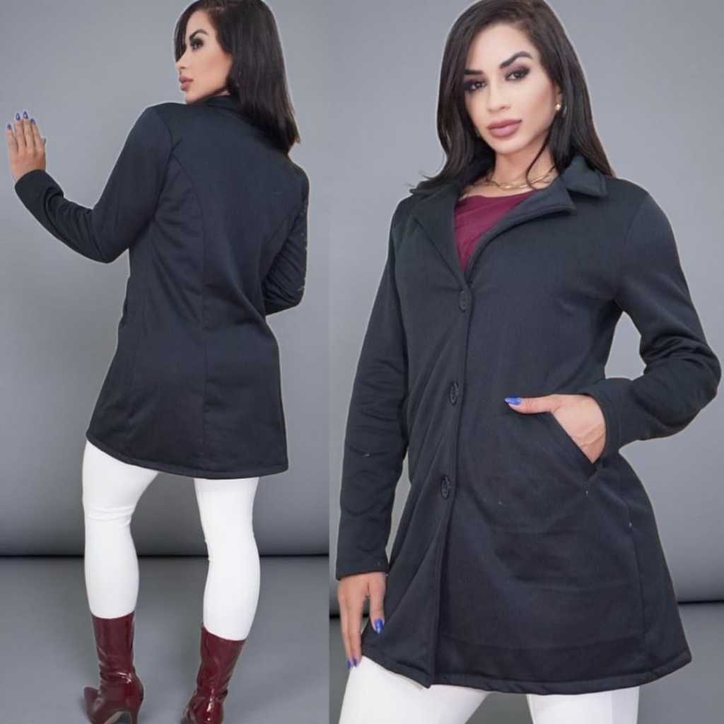 Casaco Elegante Feminino Sobretudo Moletom Poliéster Franelado com Botões e Bolso