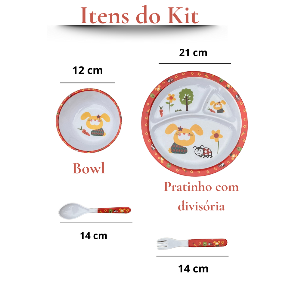 Kit Refeição Infantil Prato Com Divisórias Para Papinha Bebê Pratinho Jogo C/ 4 Pçs Alimentação