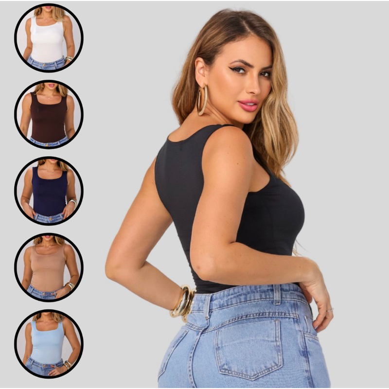 Blusa Regata Feminina Decote Quadrado Reto Básica Suplex Premium Casual Elegante Confortável Sem Manga Tendência