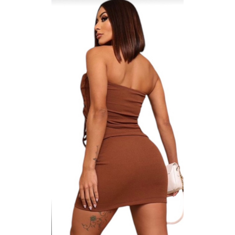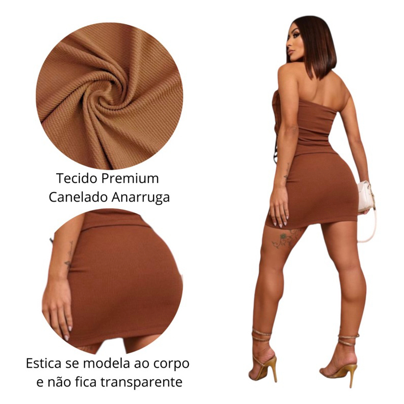 Conjunto Feminino 2 Peças: Saia Curta e Cropped Tomara que Caia | Look Verão Casual e Estiloso Conjunto Feminino
