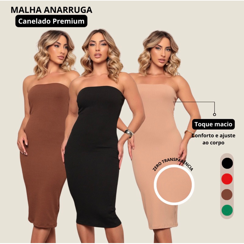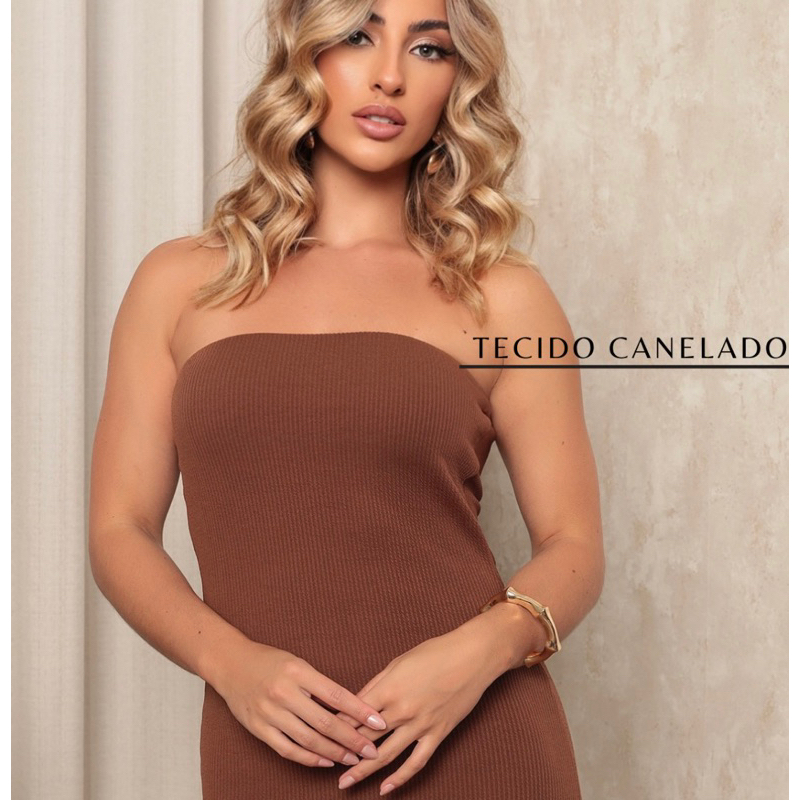 Vestido Midi Feminino Canelado Tomara que Caia Anarruga - -Elegância Sofisticado e Confortável
