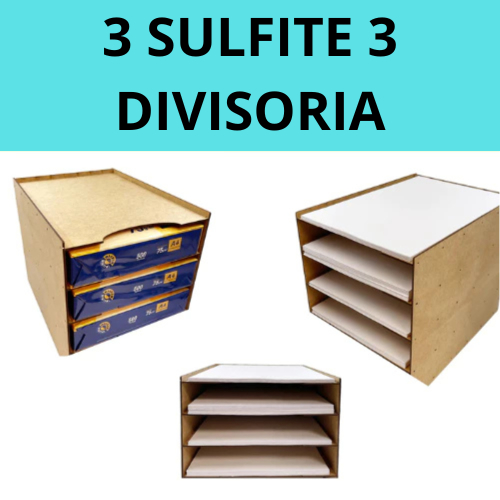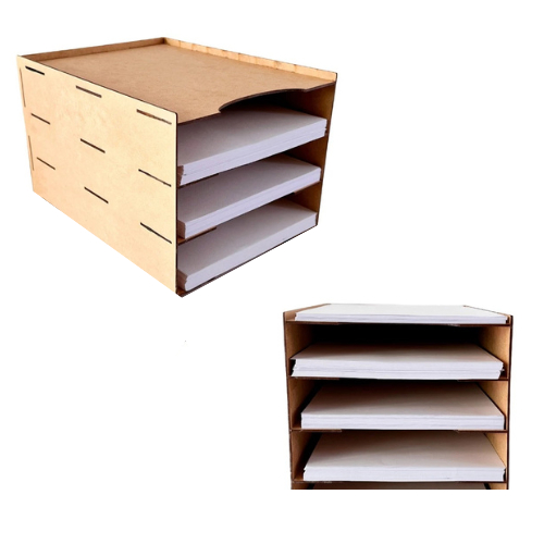 Organizador De Documentos A4 + De 2000 Folhas Escritório Mdf cores Crú Divisórias organizador Sulfite A4 com 3 divisória