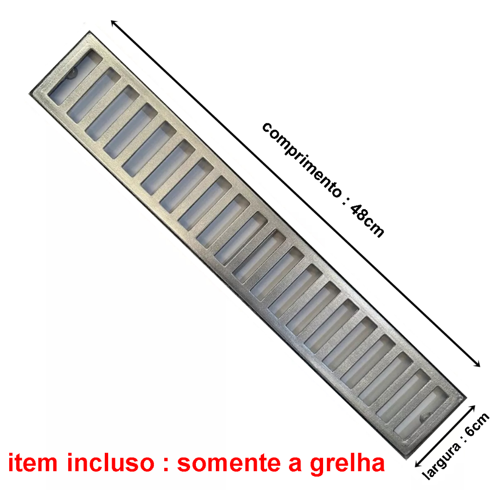 ralo linear 6x48cm grelha em alumínio ( somente a grelha ) rr grelhas